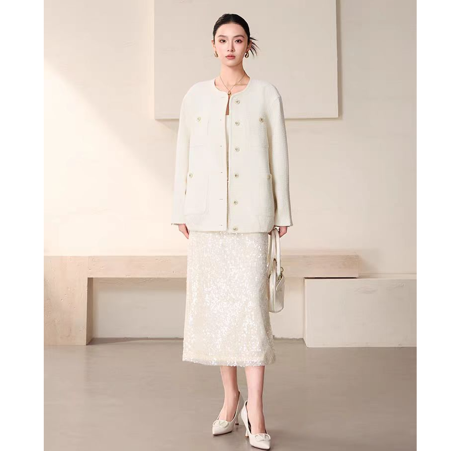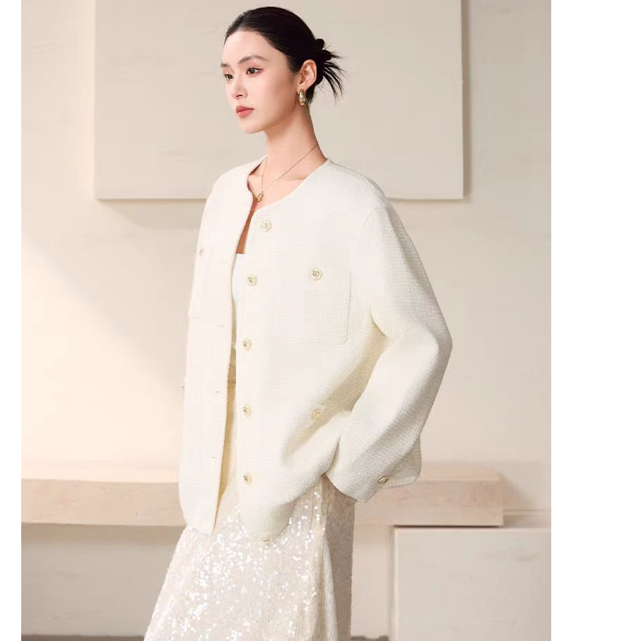 【粉丝专属】【商场同款】曼德诗小香风外套新款绵羊毛花呢M42130
