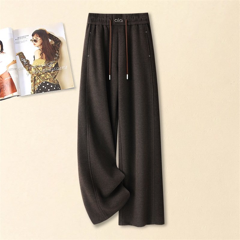 首页> 女装> 啄木鸟杏色宽松垂坠感休闲阔腿裤女秋季高腰时尚直筒拖地长裤