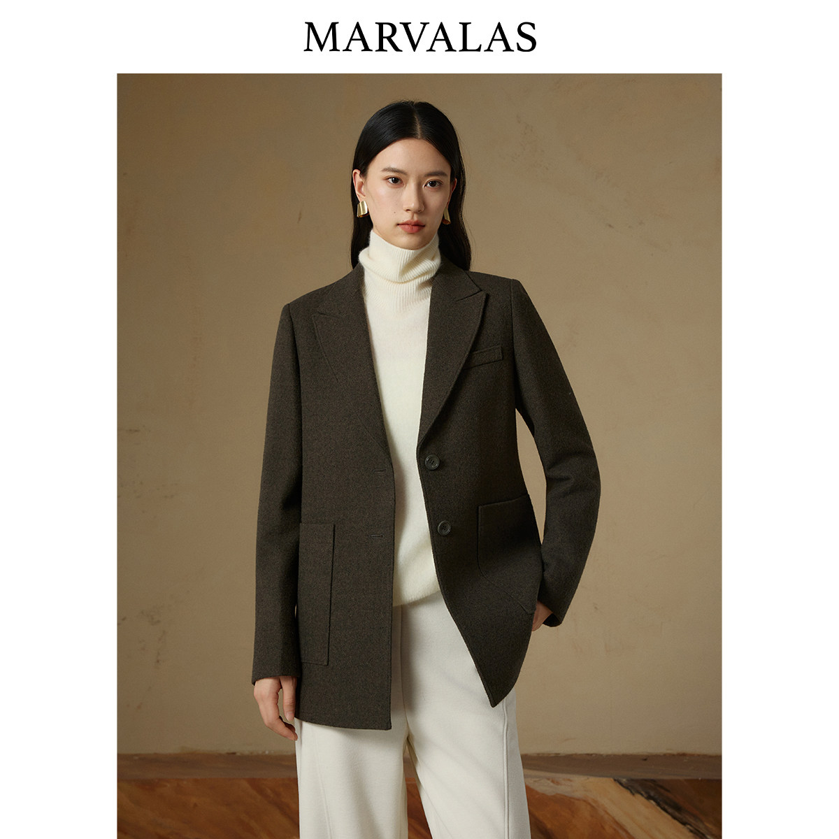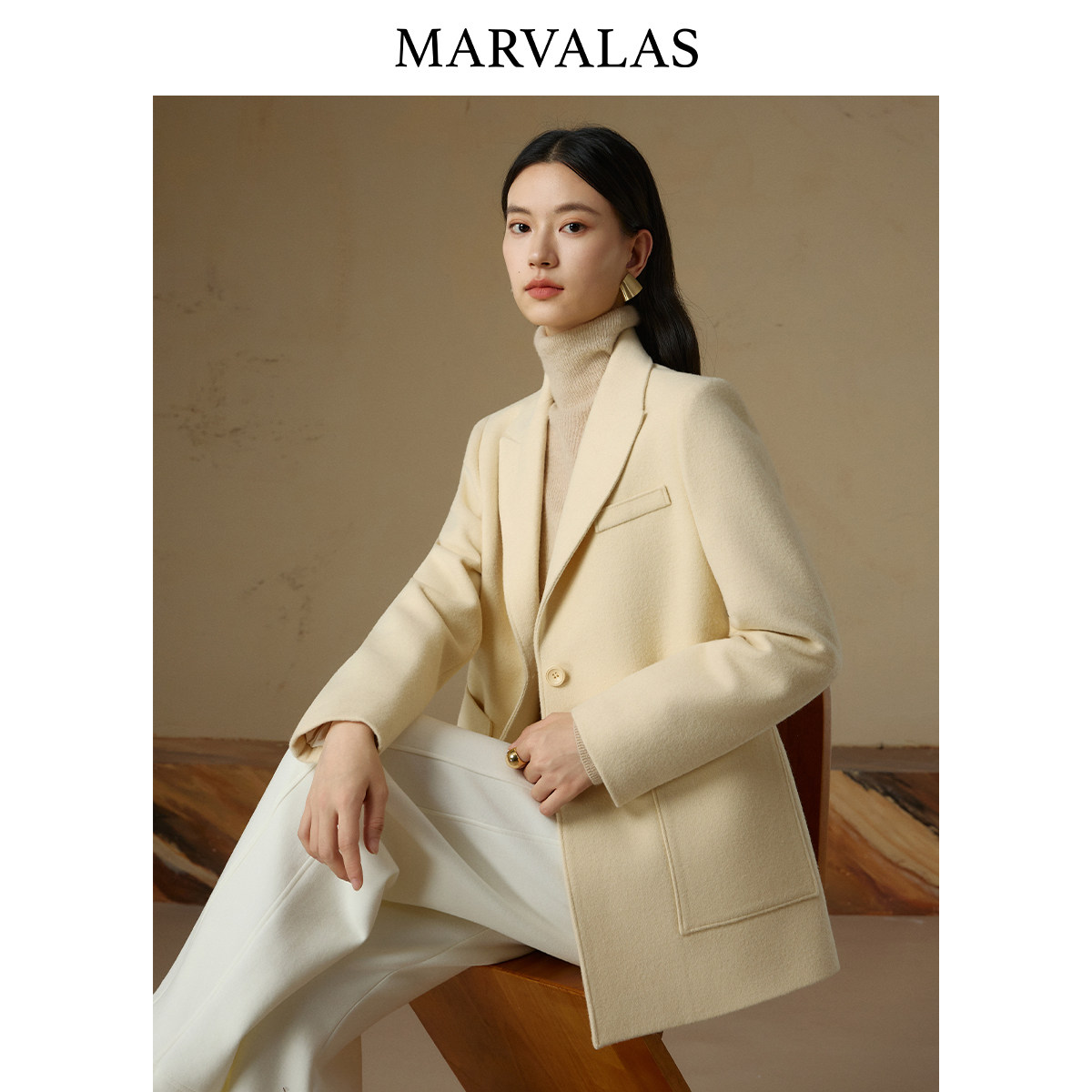 【粉丝专属】曼德诗绵羊毛混纺大衣2025冬季新款时尚纯色百