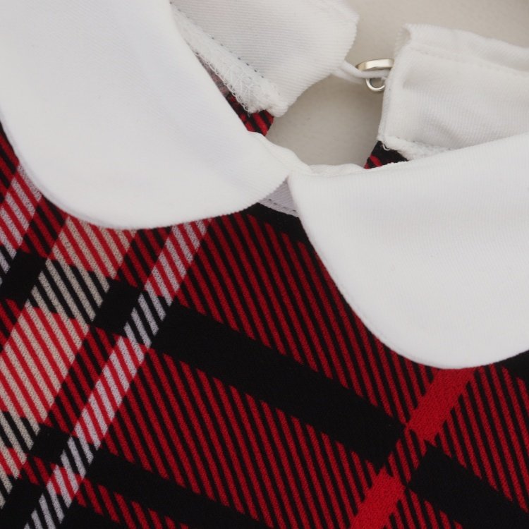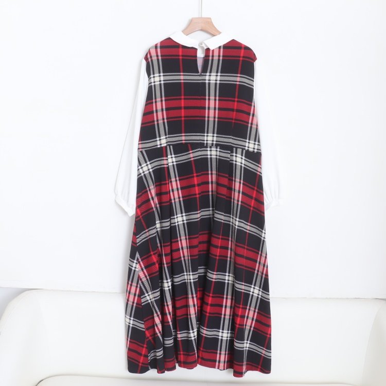 首页> 女装> D08045日单新款客供料后纽扣娃娃领套头宽松女拼接格子连衣裙大码