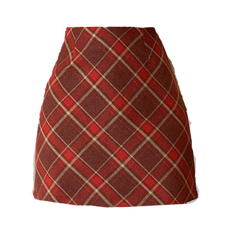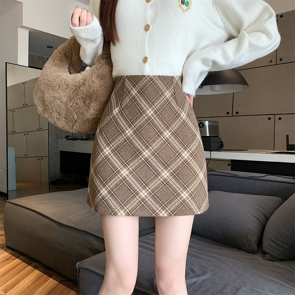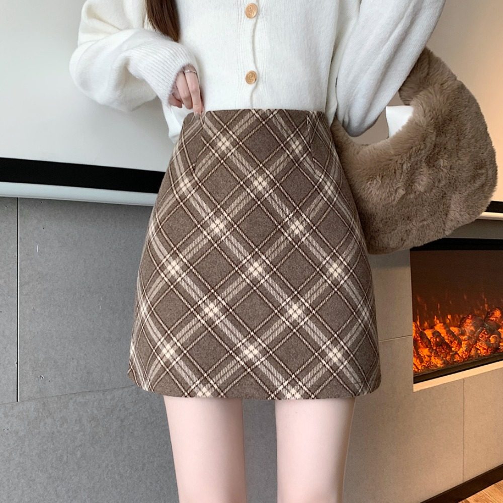 实拍~大码女装秋冬季新款半身裙毛呢格子短裙高腰A字裙格纹简约款