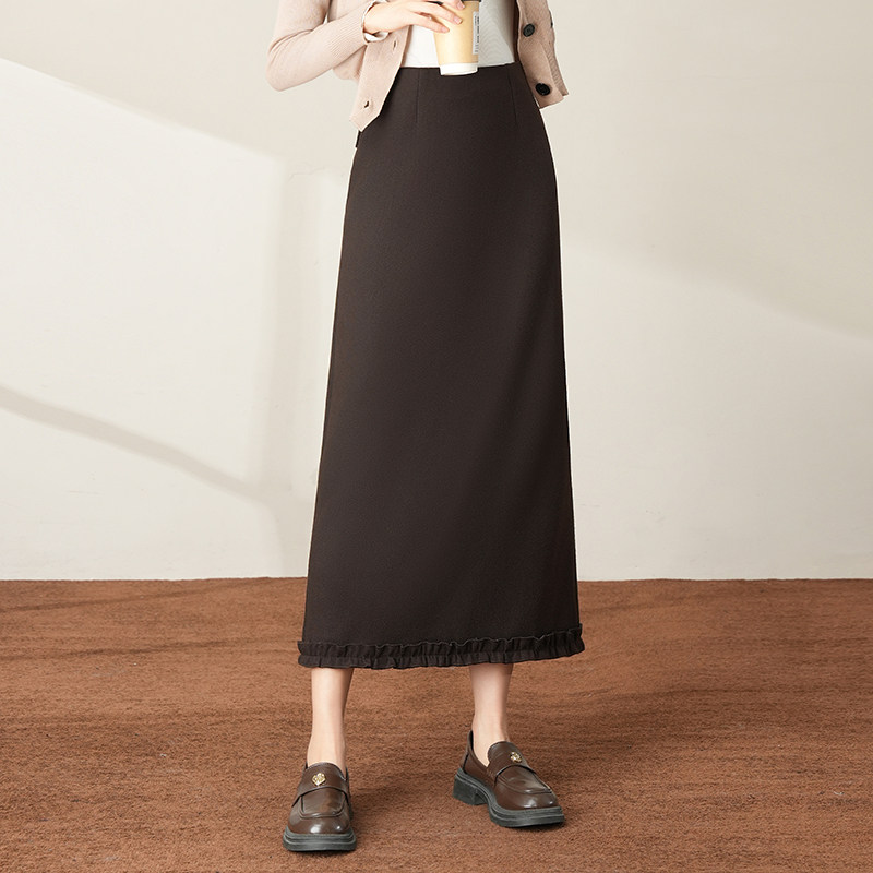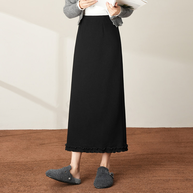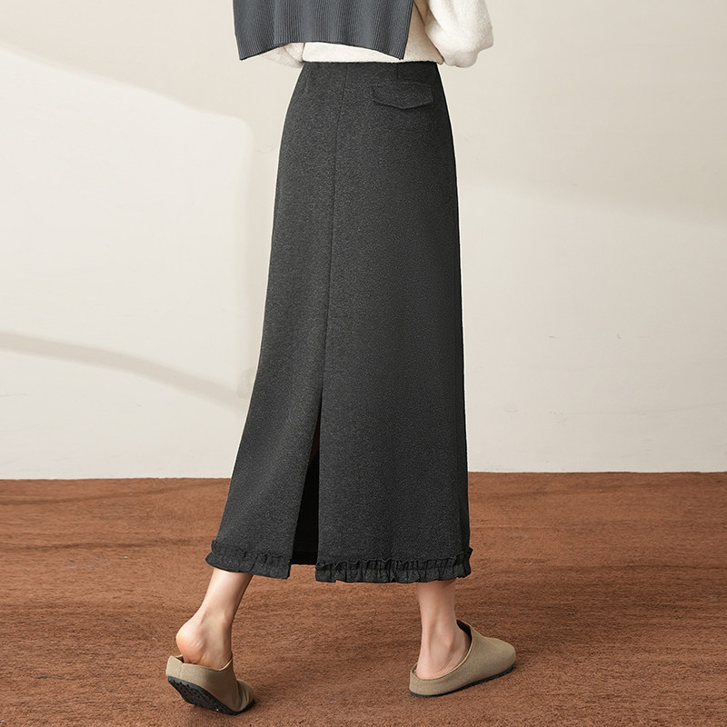 首页> 女装> 木耳边毛呢直筒半身裙女2025新款秋冬高腰显瘦中长款开叉包臀裙子