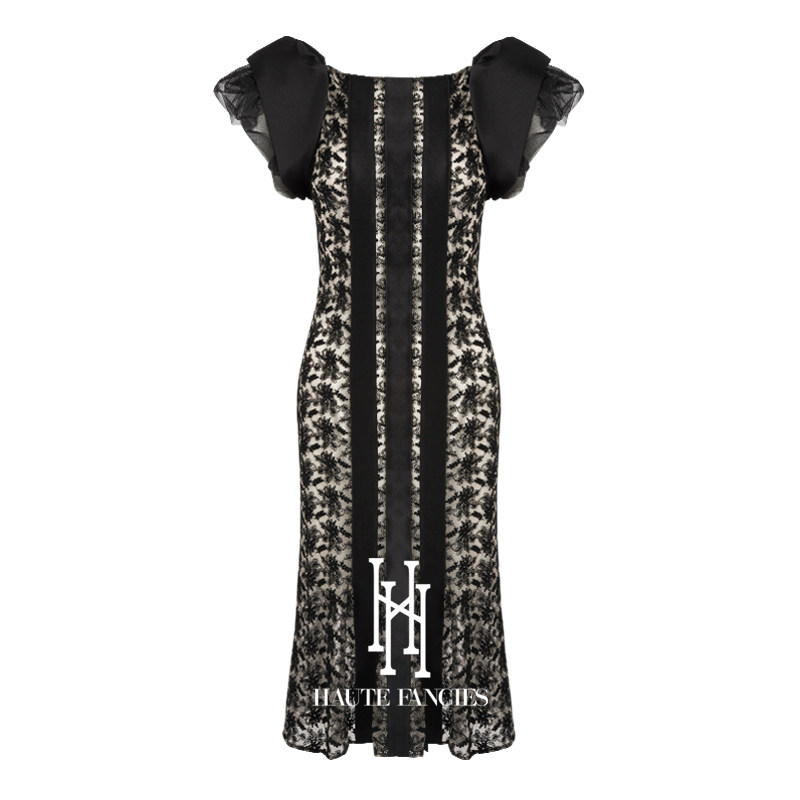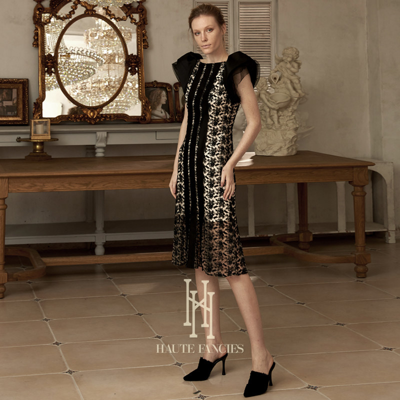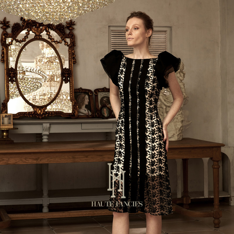 高定 HAUTE FANCIES后构想|黑色玫瑰袖法式优雅立裁高腰连衣裙