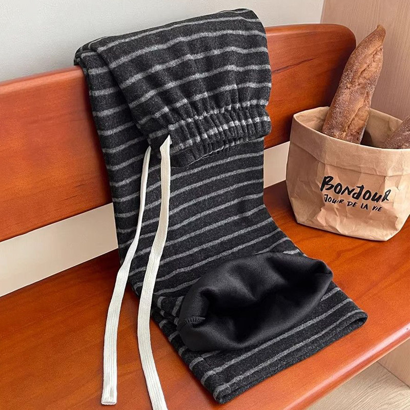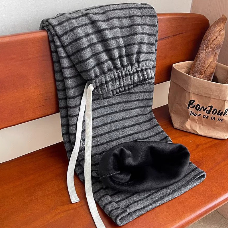首页> 女装> 小个子150加绒条纹糯米裤女冬季加厚针织裤宽松抽绳休闲阔腿长裤