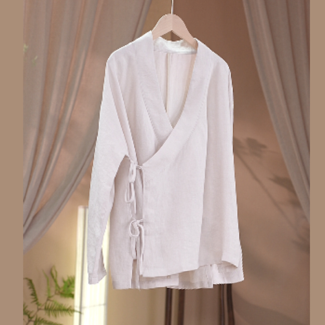 如素慢衣斜襟纯色长袖汉服上衣中国风复古茶服36547
