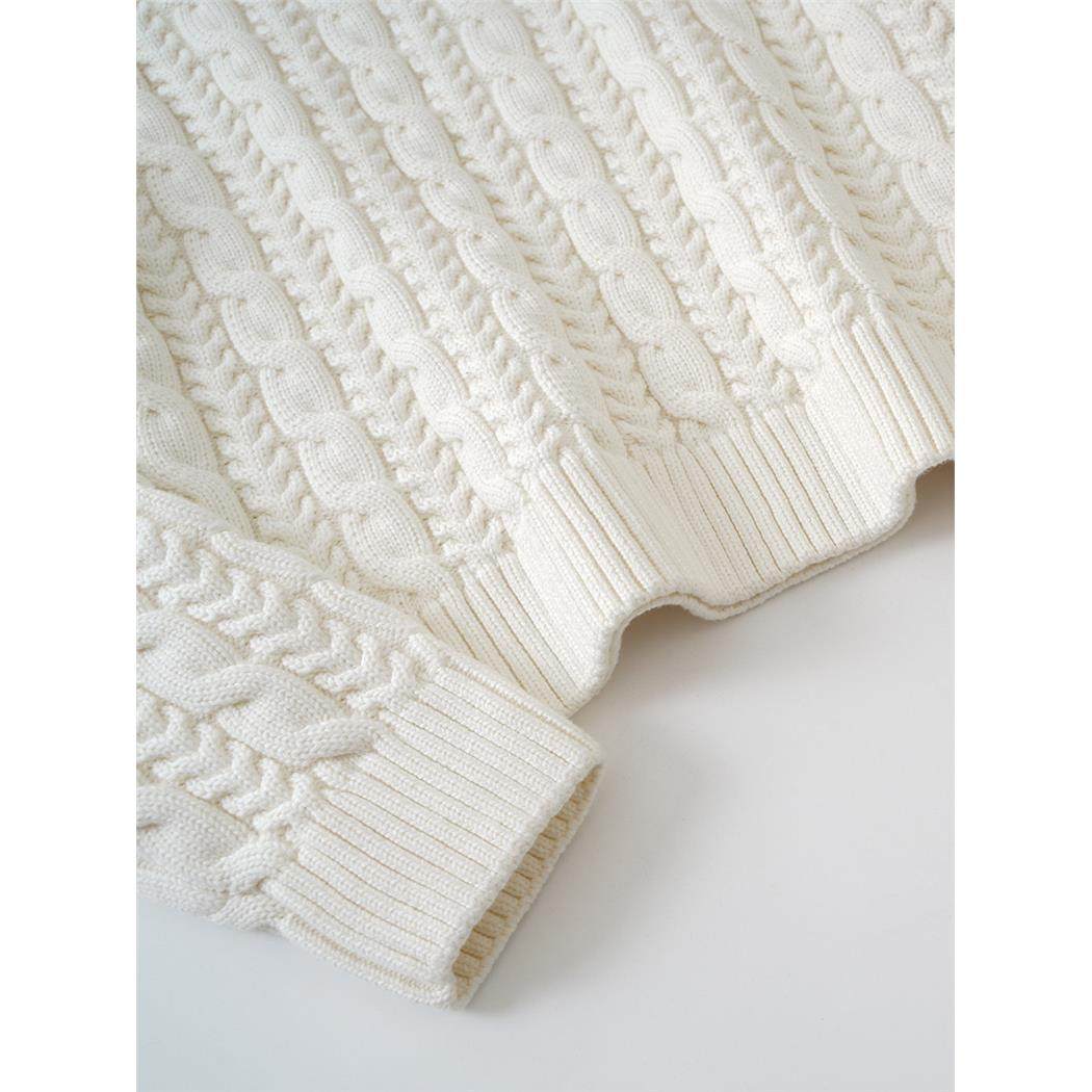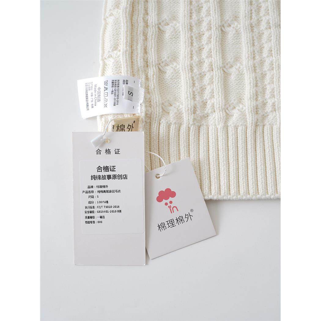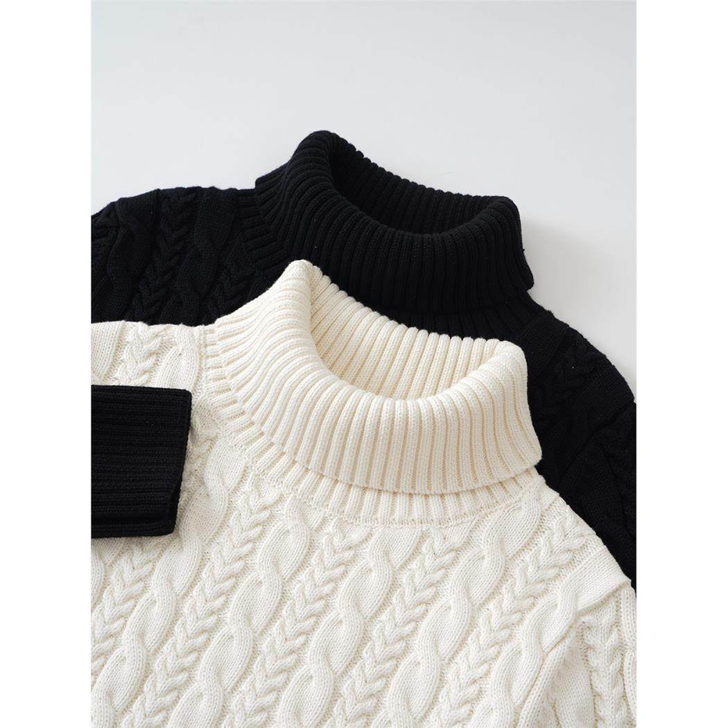进口机扭绳 100%全棉 短款麻花高领毛衣女士打底针织衫加厚 宽松
