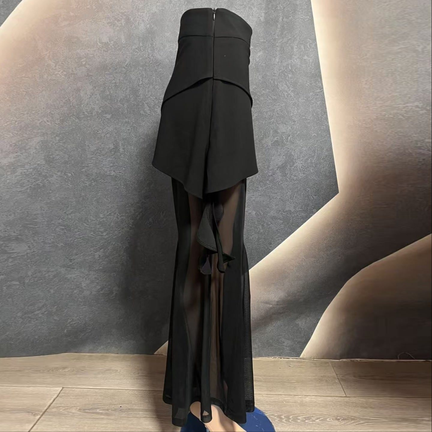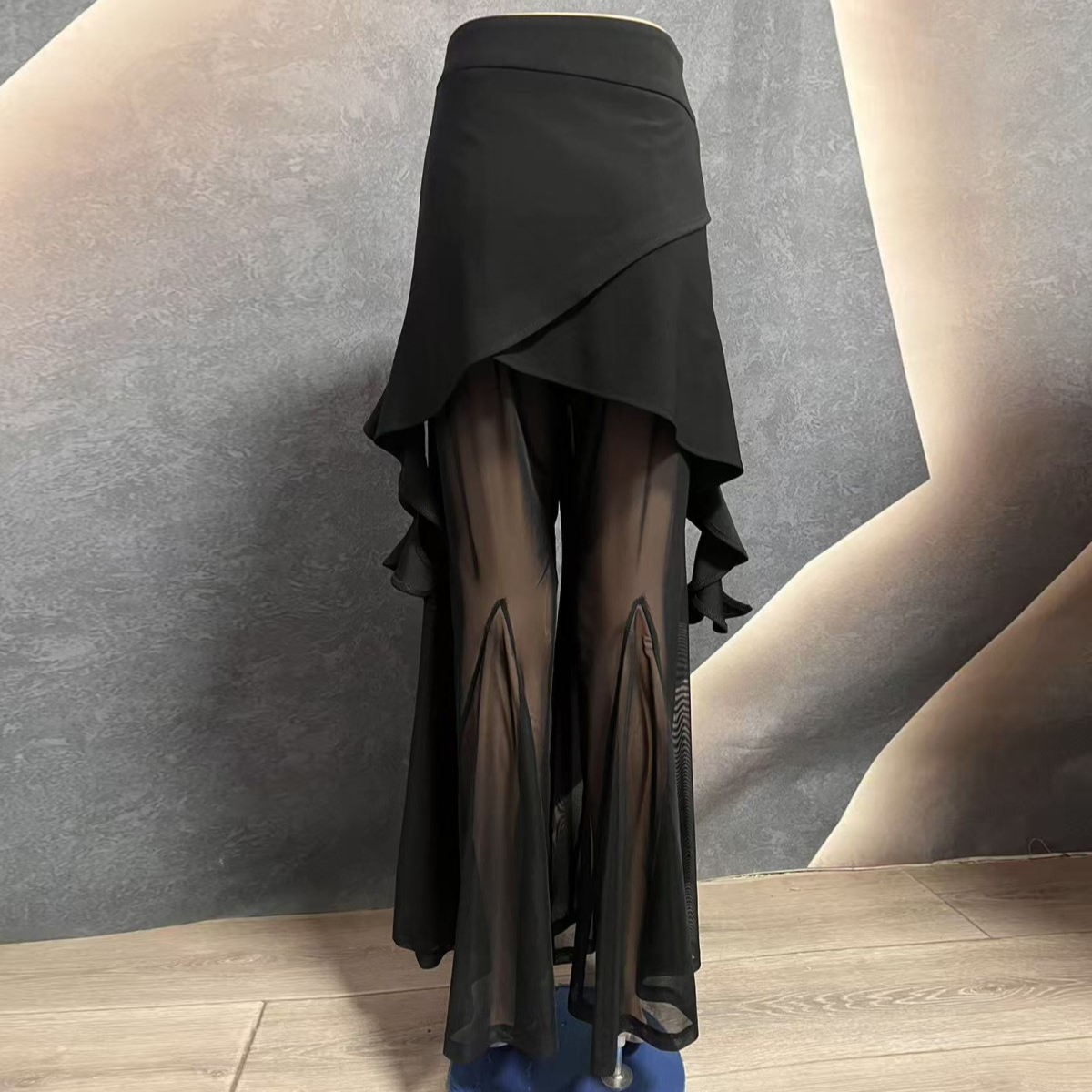 【浩婷雪娟】不规则拼接网纱高级喇叭裤