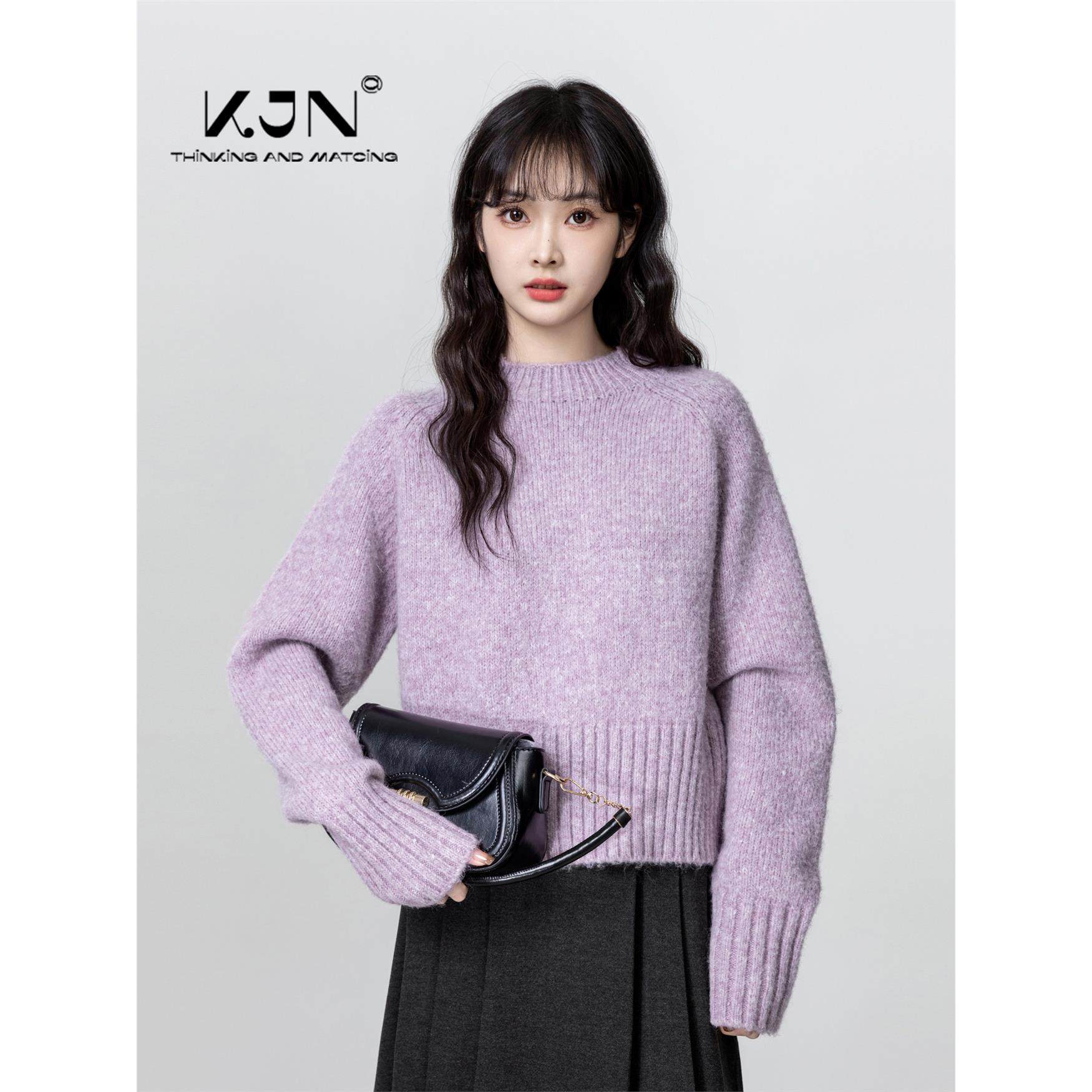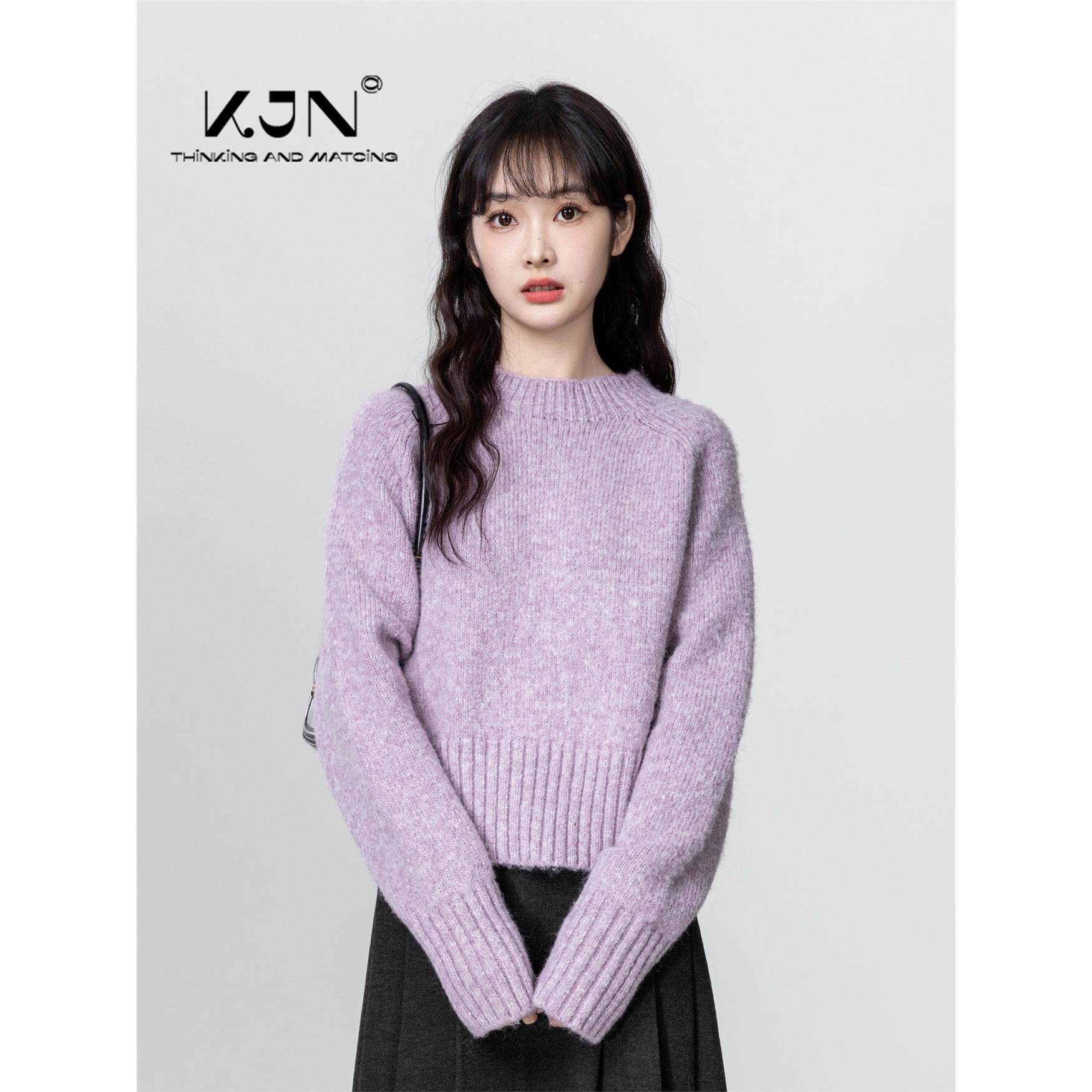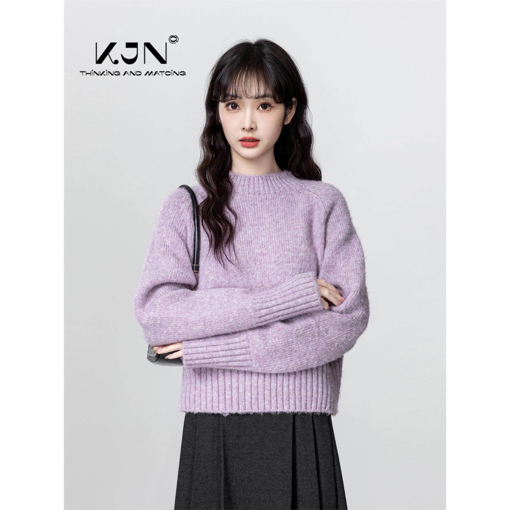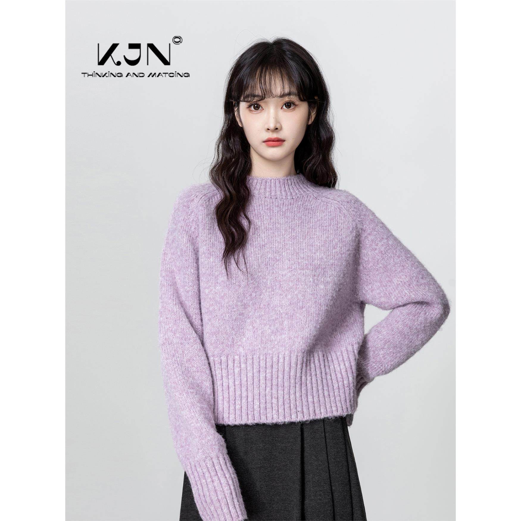 紫色半高领毛衣女秋冬2025新款软糯内搭打底衫中领针织衫短款上衣