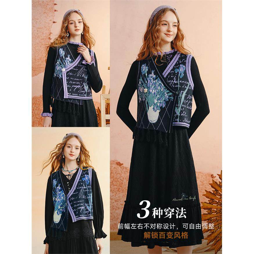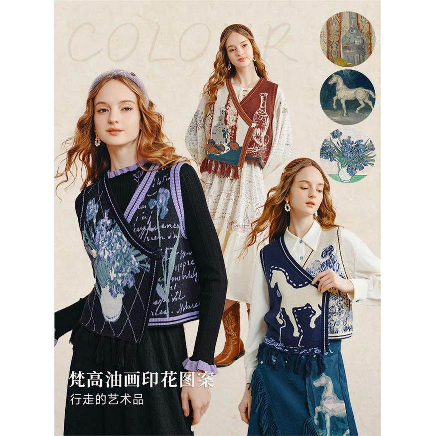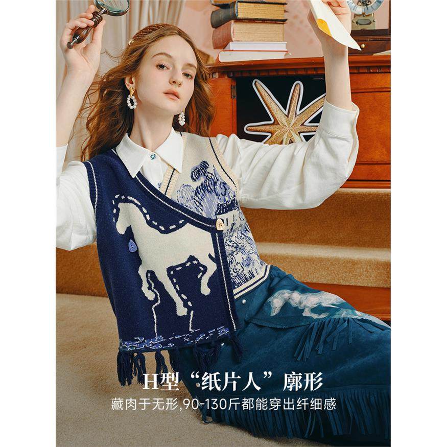 两三事针织马甲背心女2025早秋外搭开衫v领无袖上衣修旷野诗行