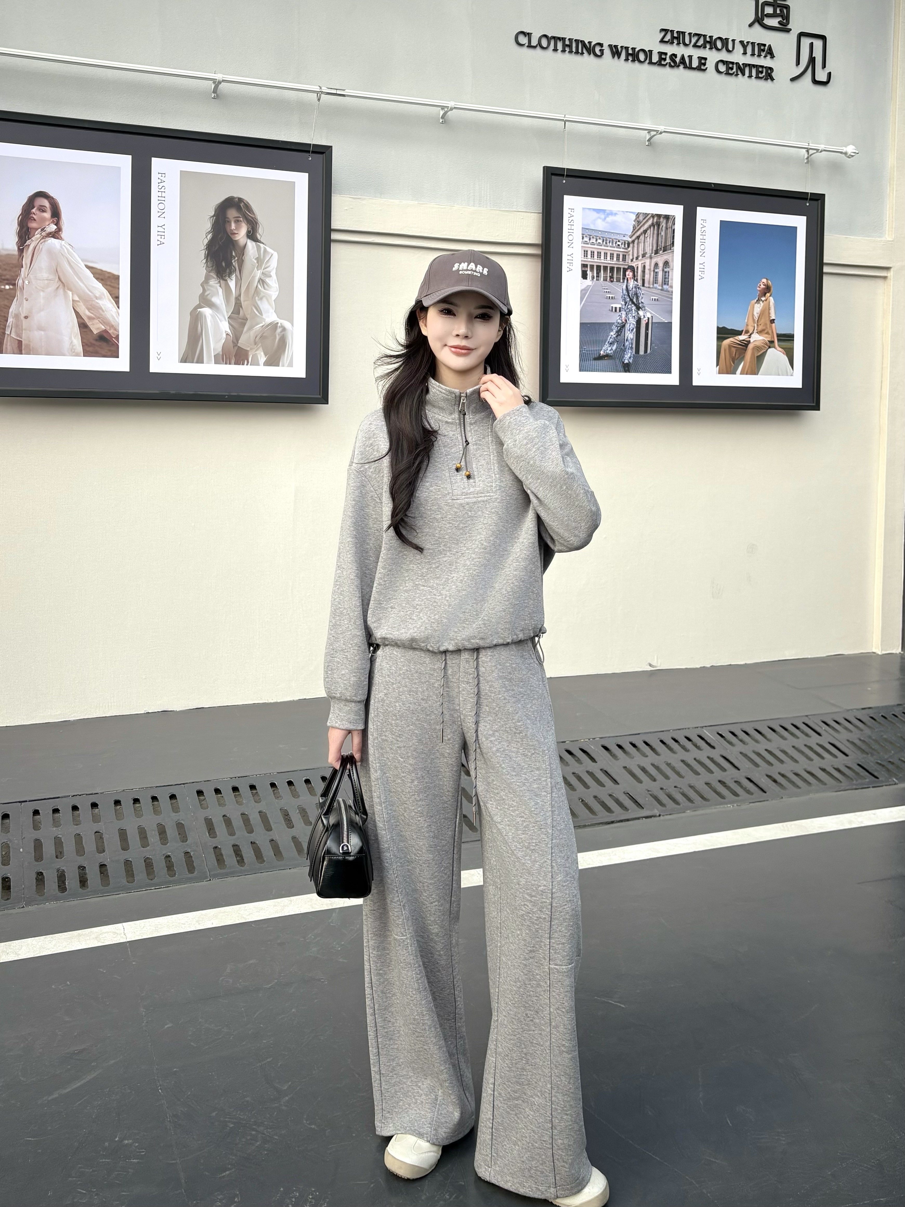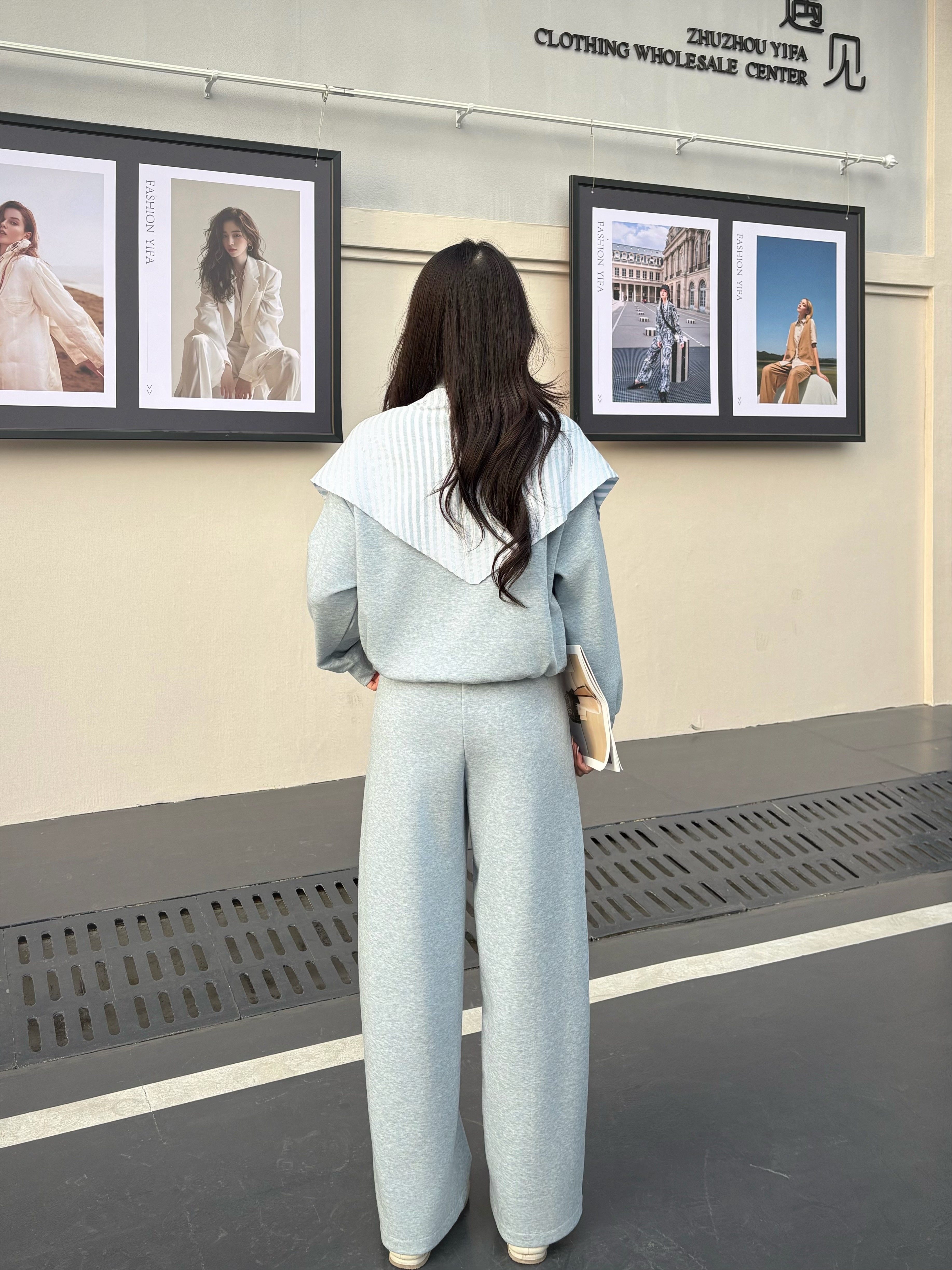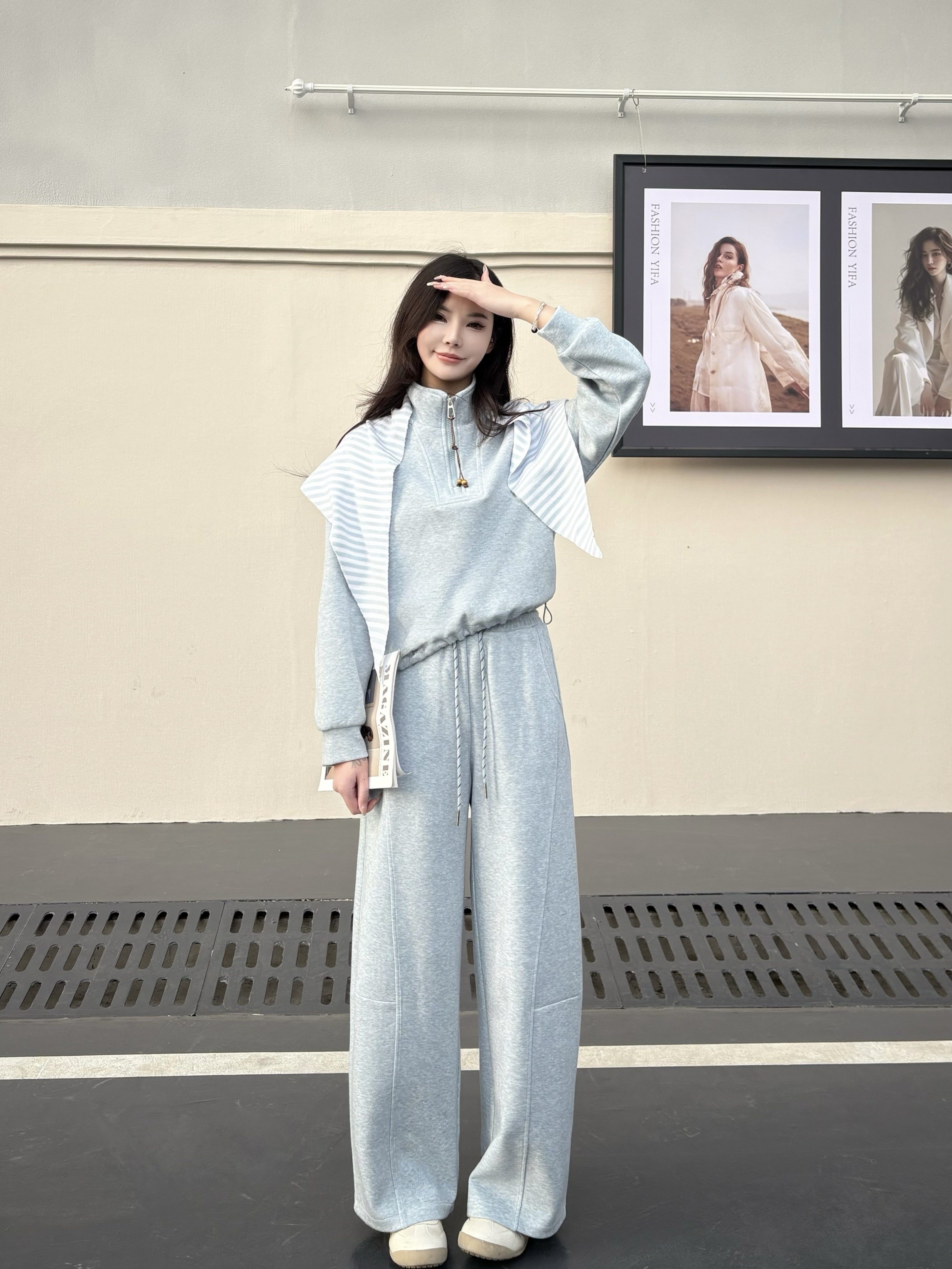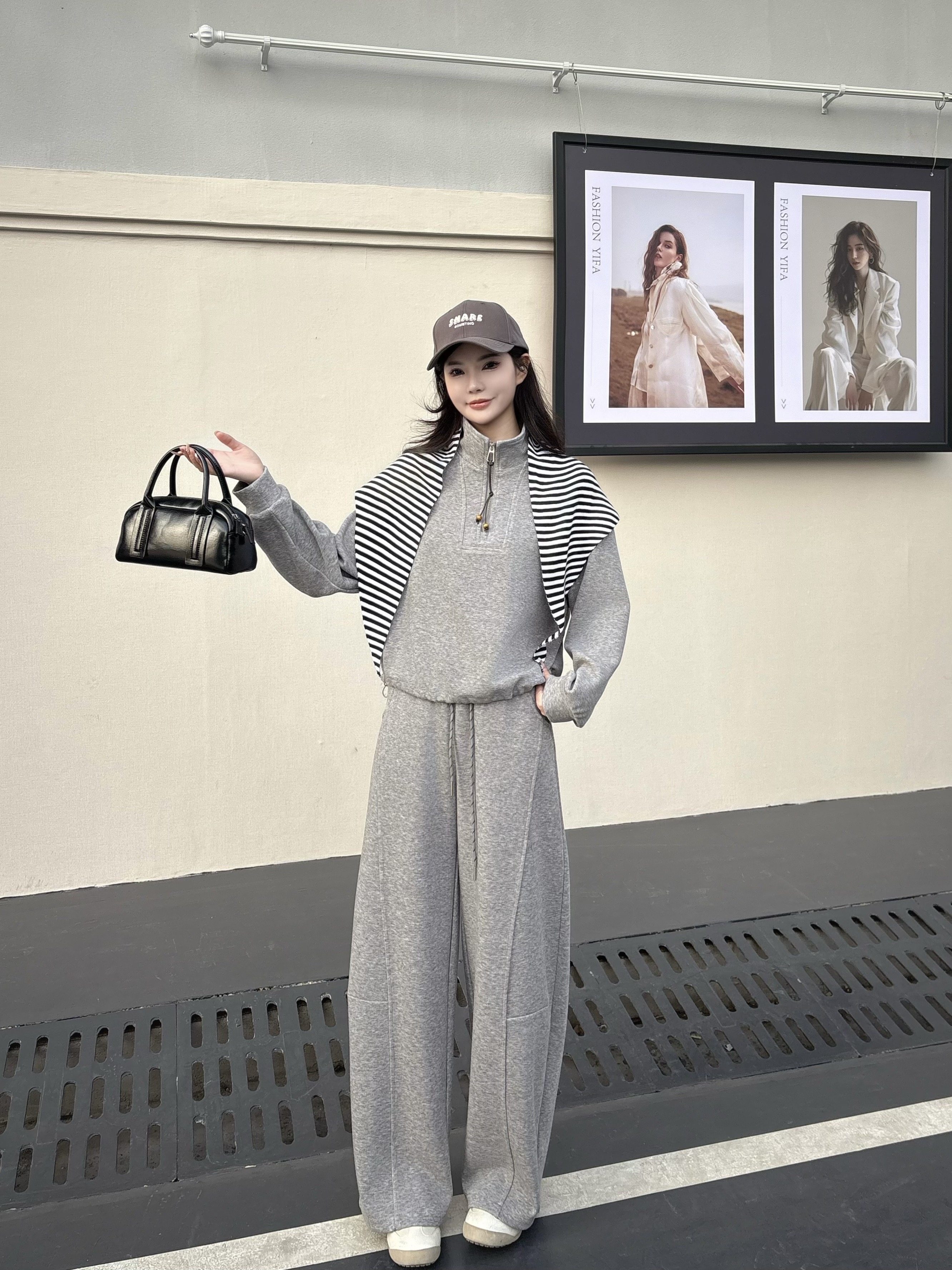 2026春新韩版显瘦休闲披肩套装女百搭卫衣+弯刀阔腿裤三件套S7608