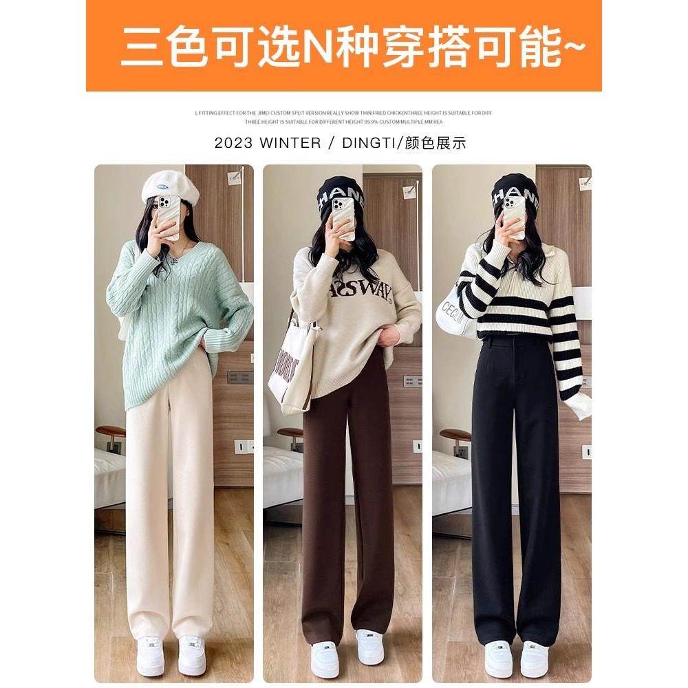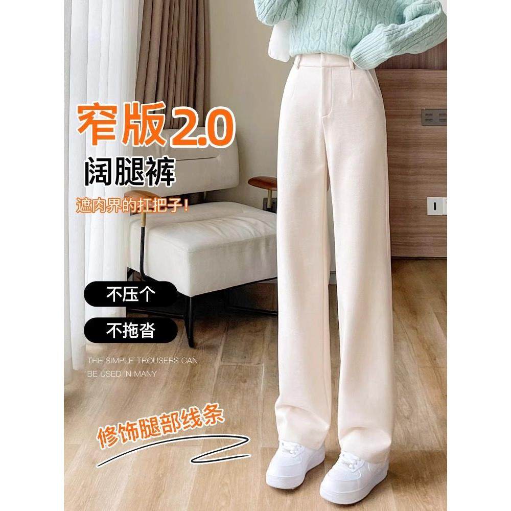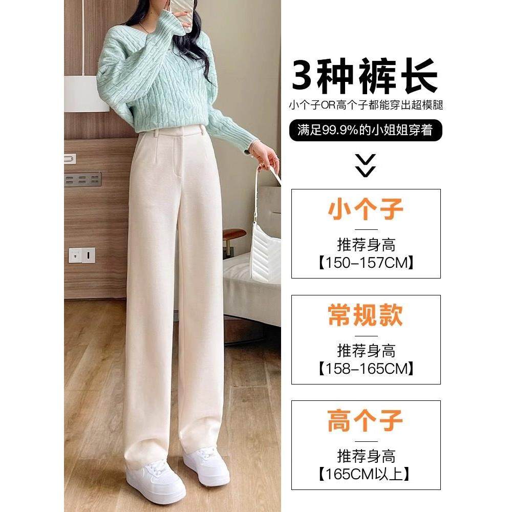 首页> 女装> 米白色毛呢阔腿裤女春秋冬2025新款小个子高腰垂感窄版直筒休闲裤