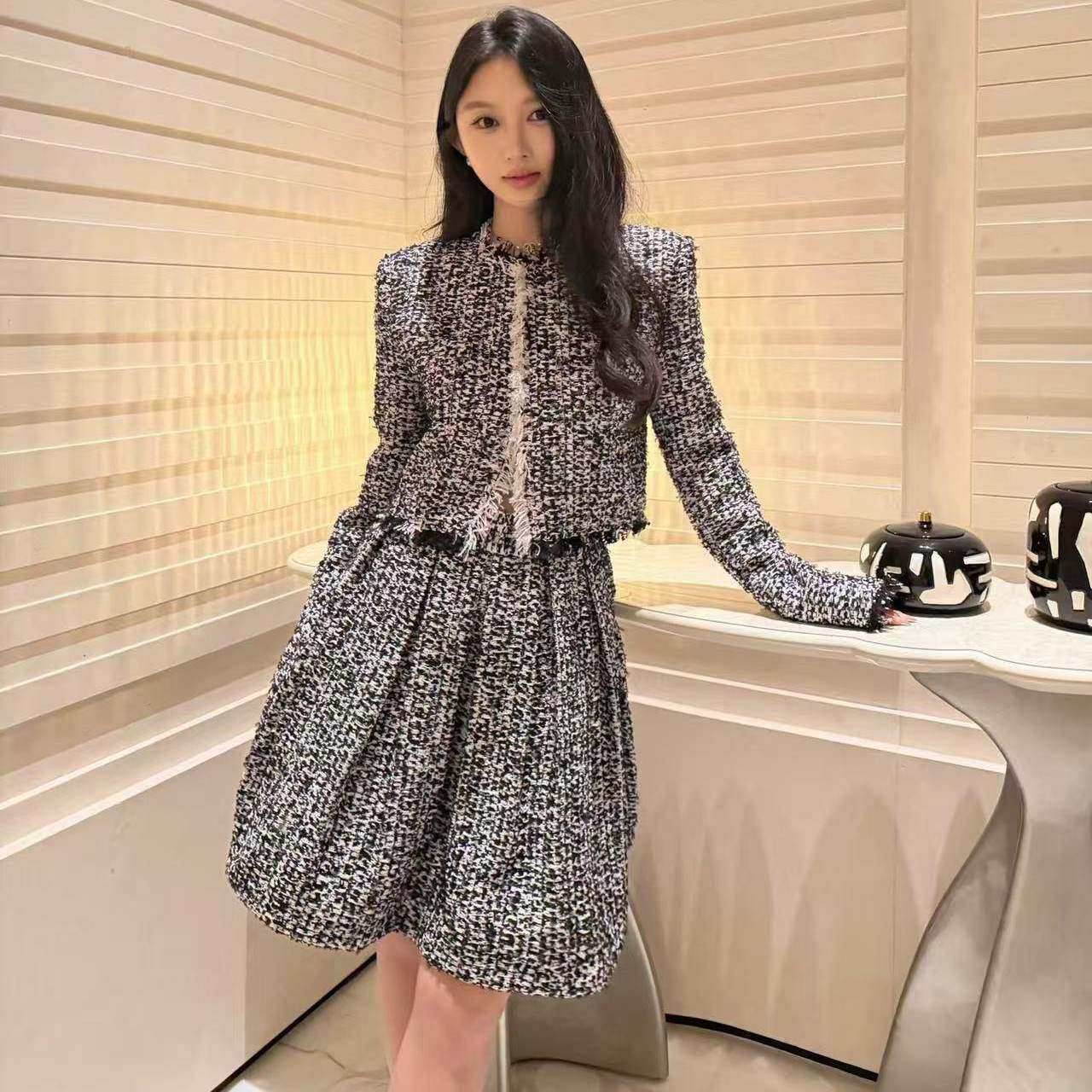 好漂亮黑白拼色毛边小香风外套女2025年冬季新款短上衣名媛时尚潮