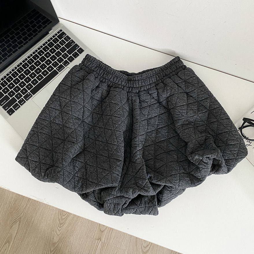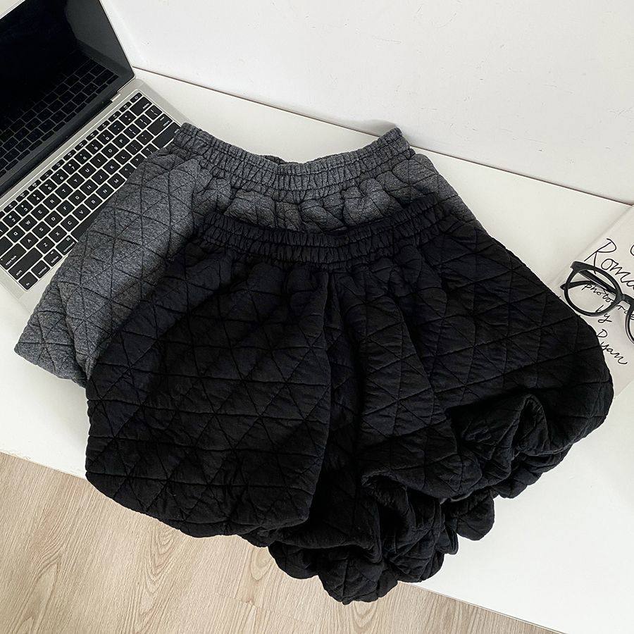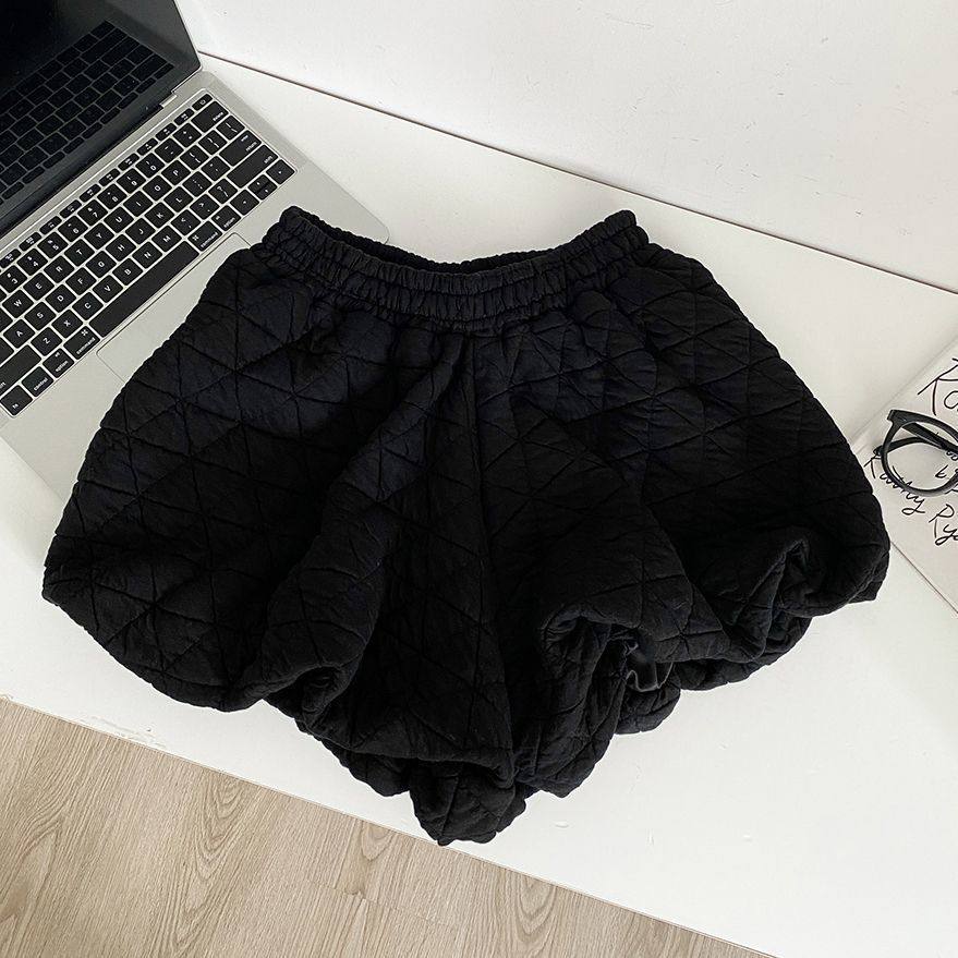 菱格夹棉压线花苞灯笼裤女冬季松紧腰a字打底裤外穿包臀阔腿短裤