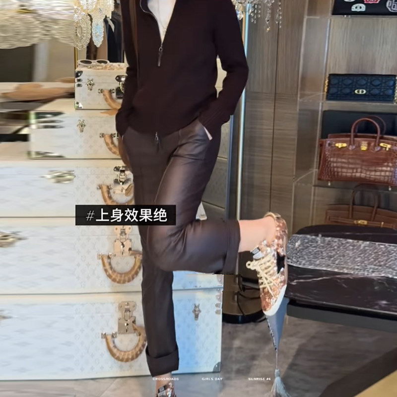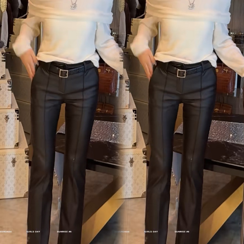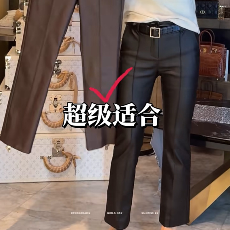 纯色休闲涂层PU皮裤2025秋冬百搭高腰净版简约显瘦九分直筒裤