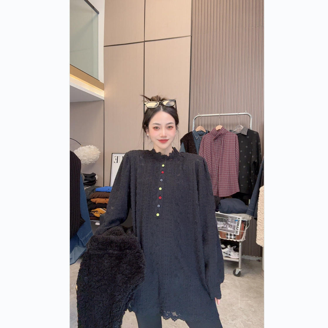 【多巴胺彩色纽扣】时尚高级感温柔穿搭简约蕾丝休闲宽松显瘦上衣