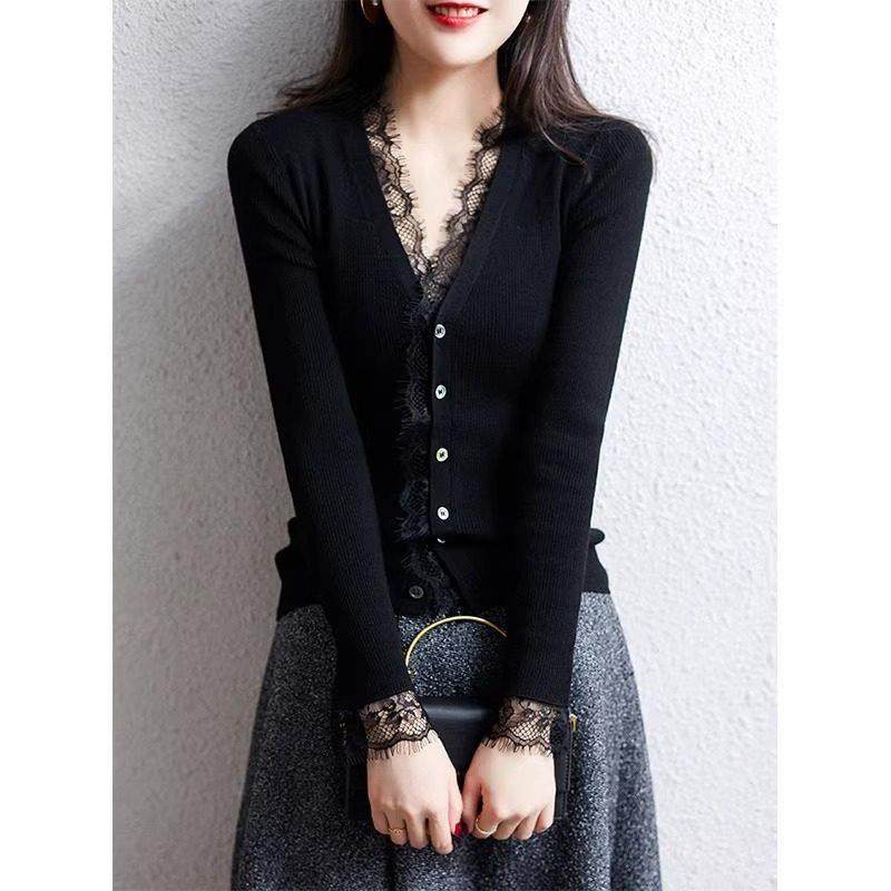 首页> 女装> 蕾丝针织开衫女春秋2025新款时尚洋派内搭修身V领长袖内搭衣上衣