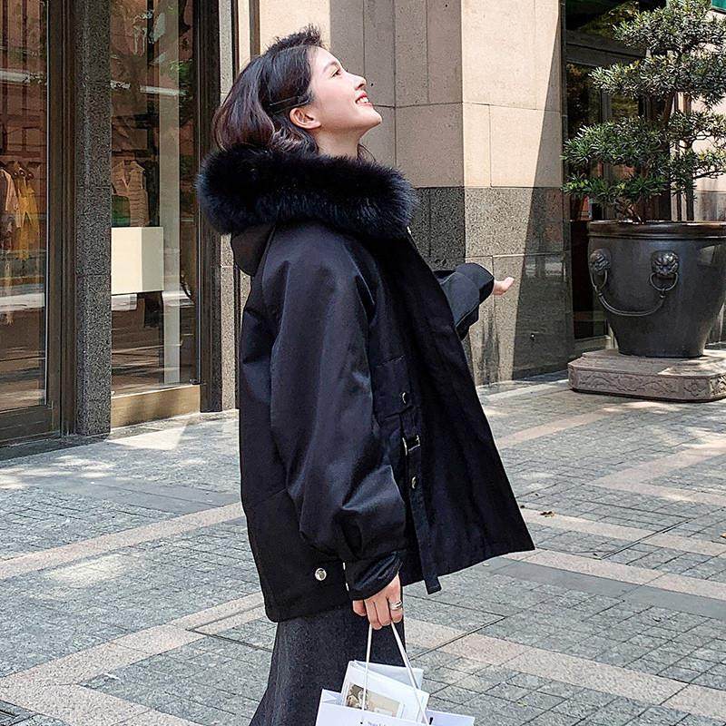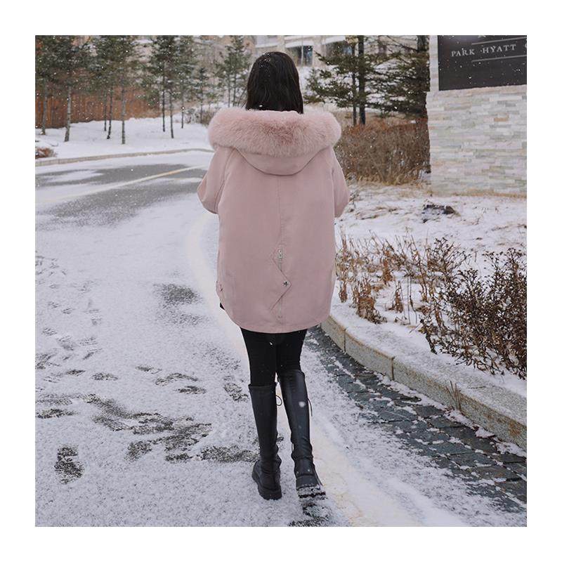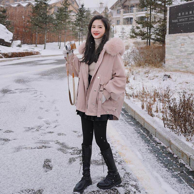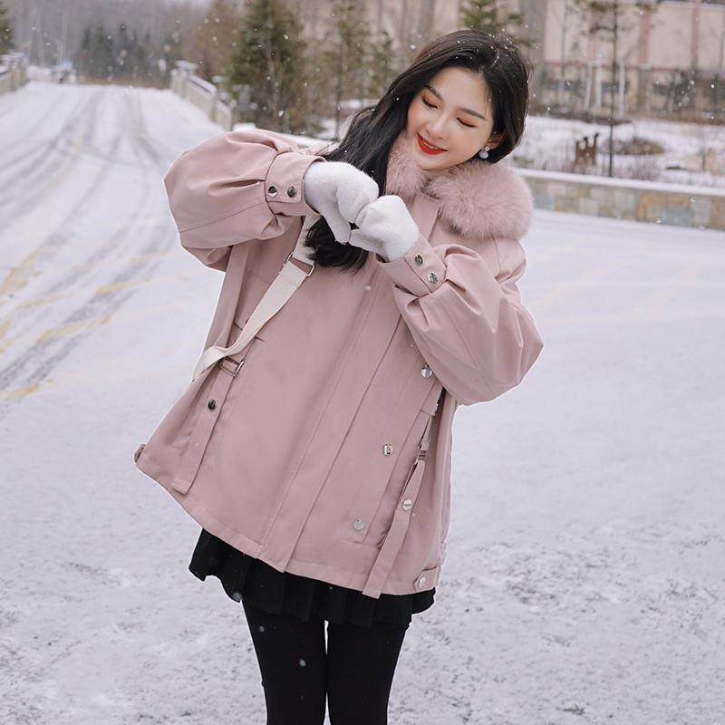 粉色派克棉服女冬季2024爆款棉衣中长款百搭宽松工装加绒加厚外套