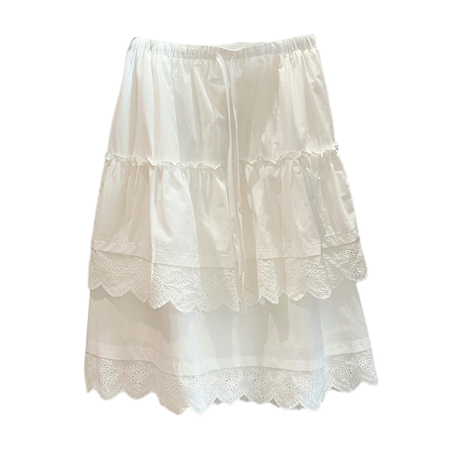 首页> 女装> 双层蕾丝花边白色蛋糕裙女春夏出游穿搭小个子A字松紧腰半身中裙