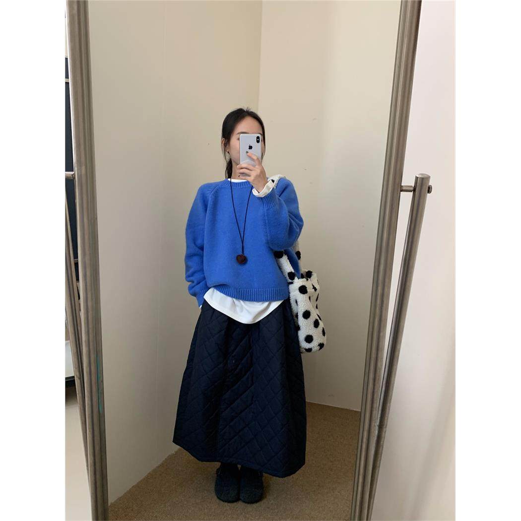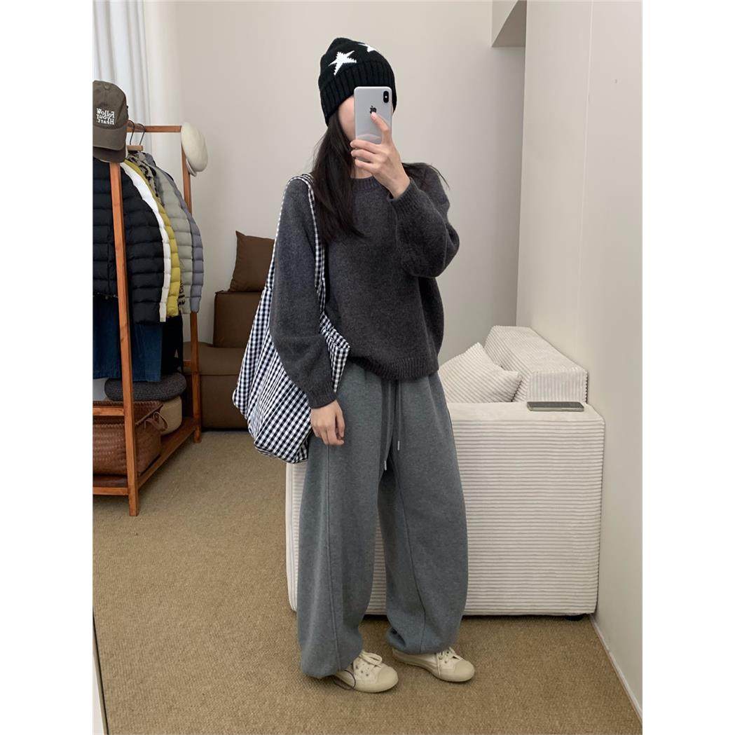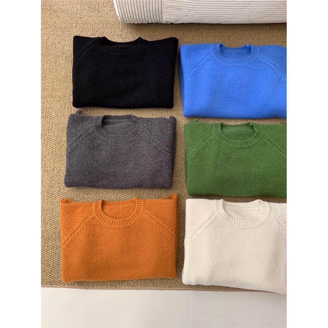 韩系休闲风加厚圆领套头上衣女2025秋冬新款简约纯色通勤百搭毛衣