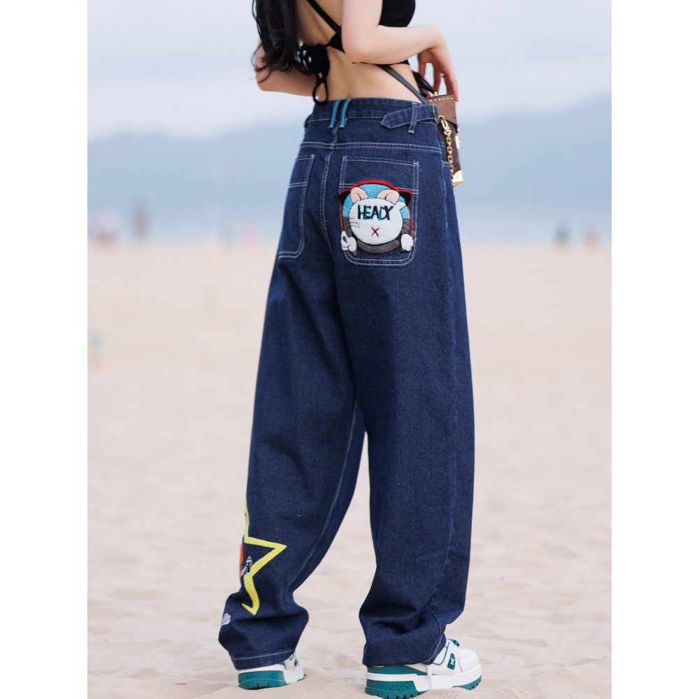 刺绣牛仔裤女2025新款秋季直筒阔腿裤时尚潮流潮牌个性爆款女裤子