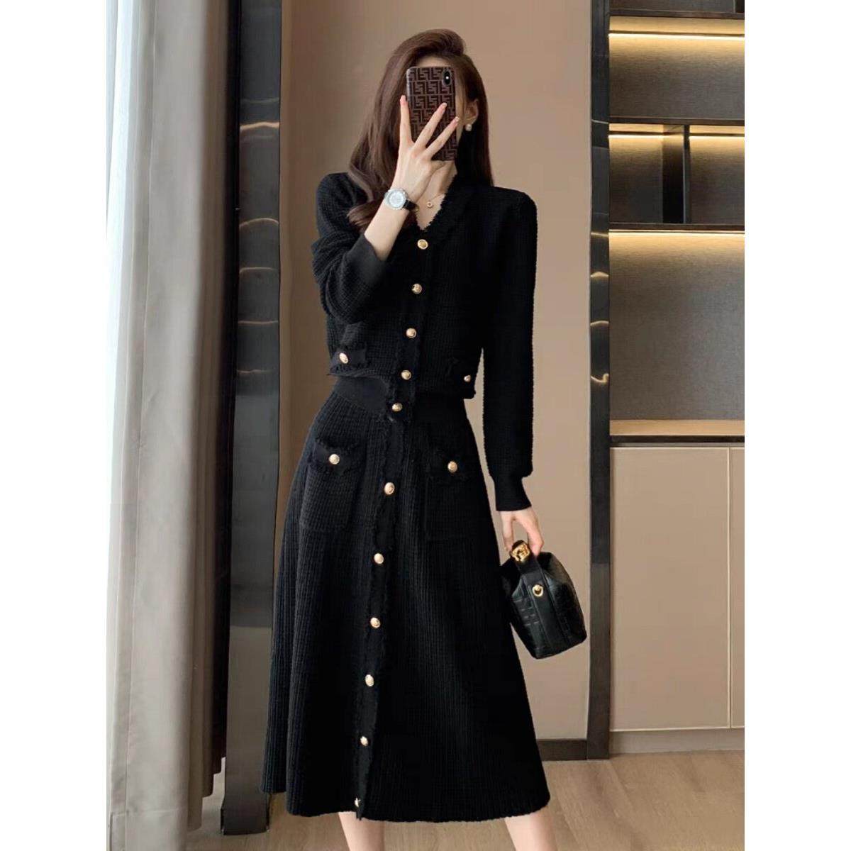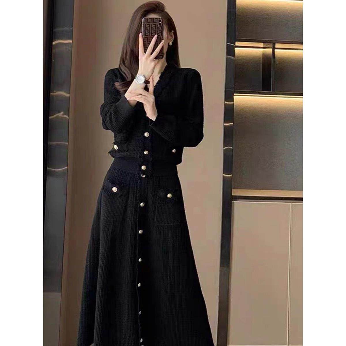 首页> 女装> 春装女款2025年新款减龄黑色连衣裙子开春穿搭套装搭配一整套时尚