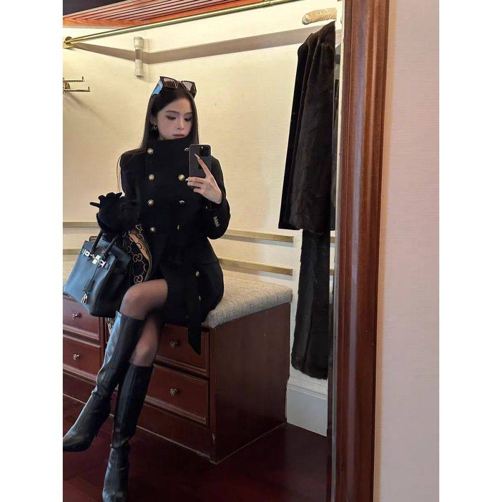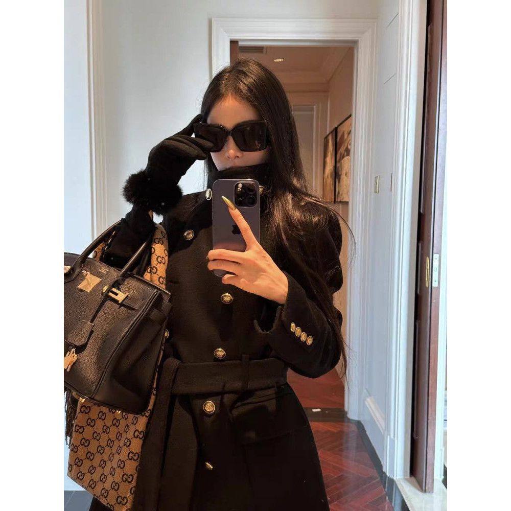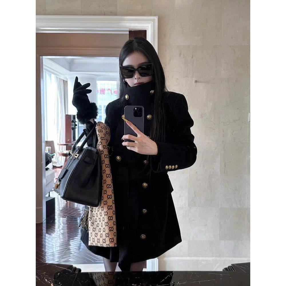 首页> 女装> 【黑调冷艳】法式气质双排扣收腰大衣秋冬新款高级优雅港风外套女