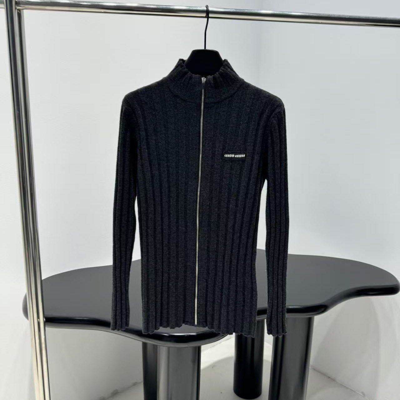好漂亮极简风亨利领半开襟针织衫女2025年冬季新款深蓝色时尚热销