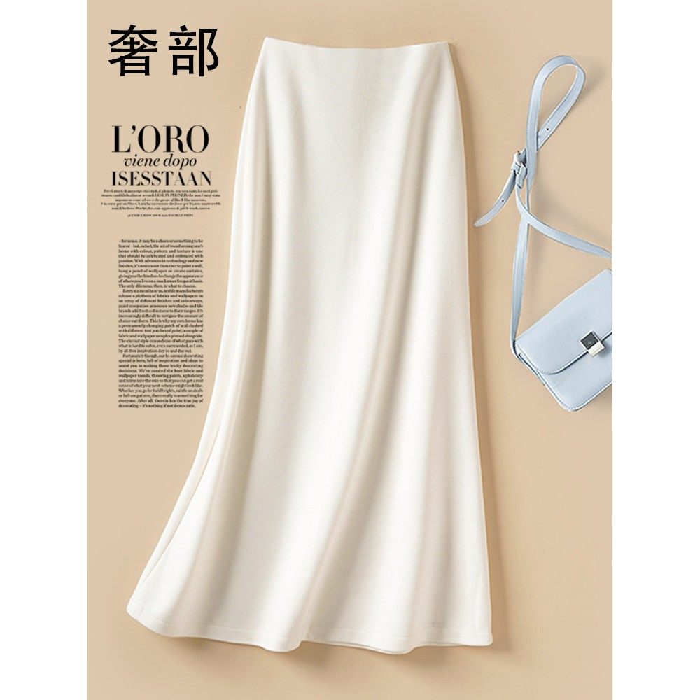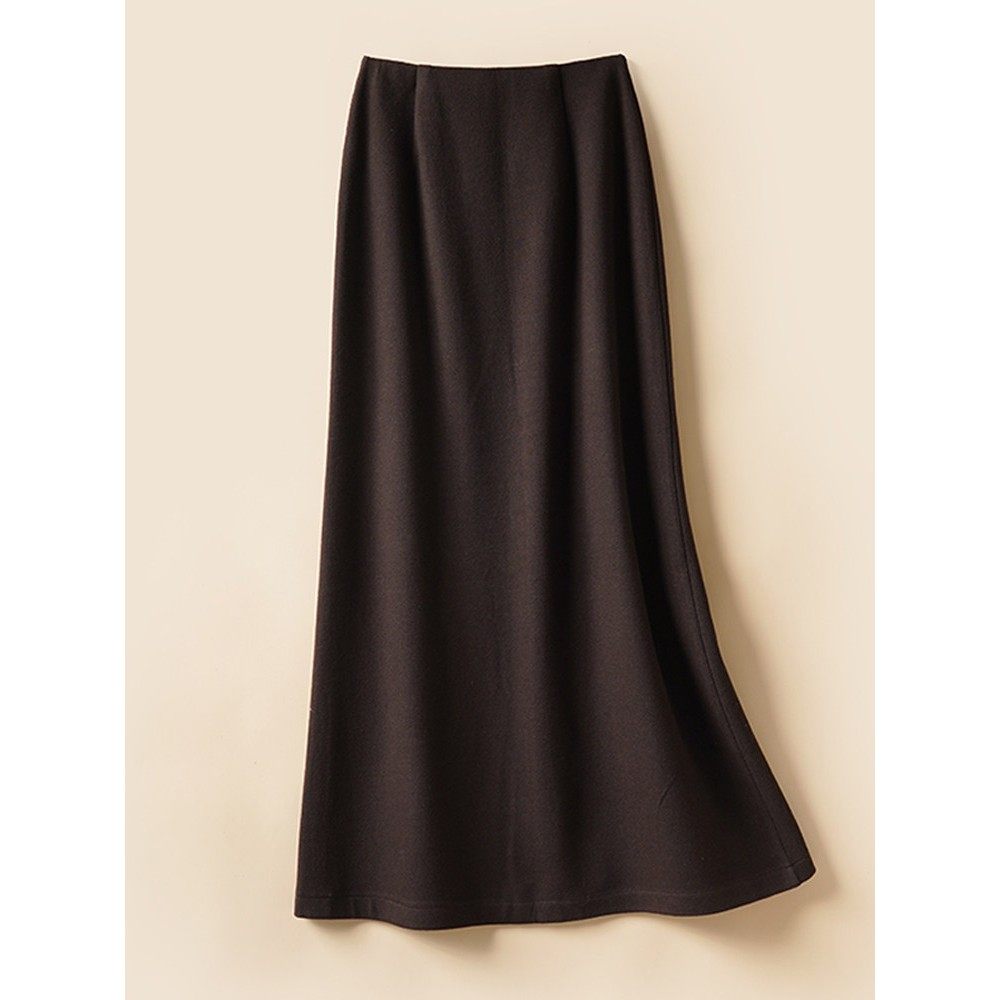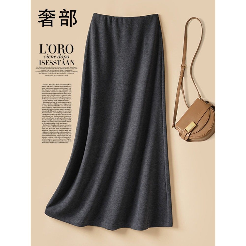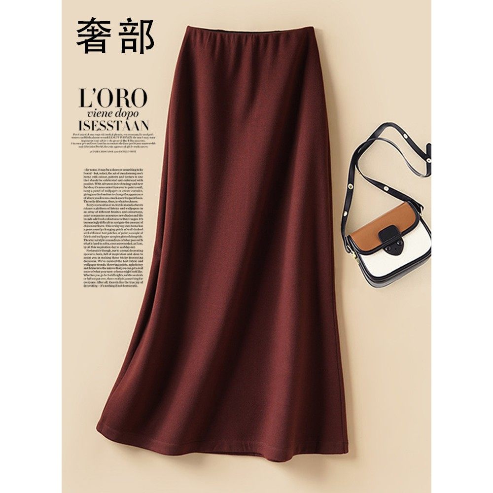 棕色羊绒醋酸羊毛盖臀直筒裙2025春秋季新款中长a字裙