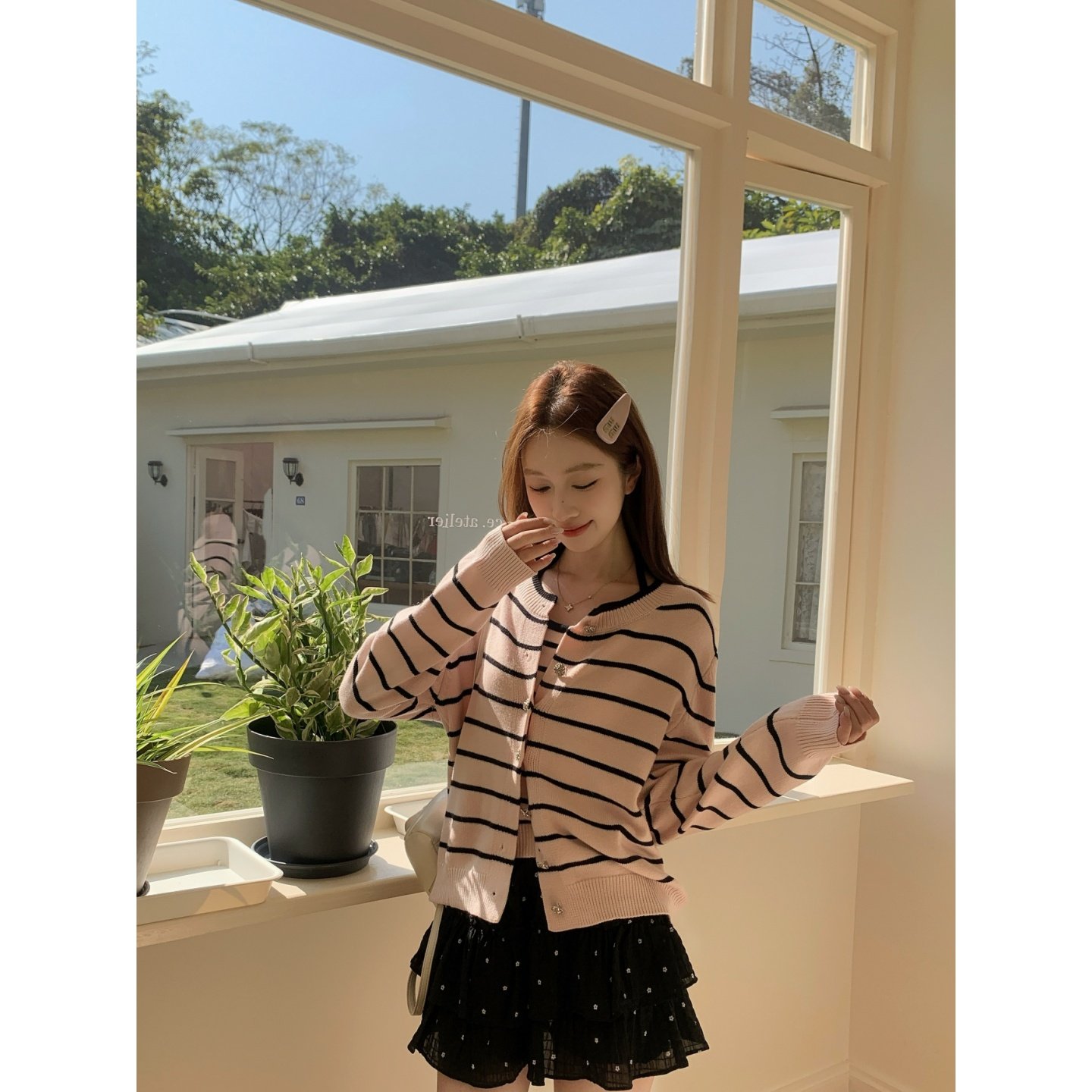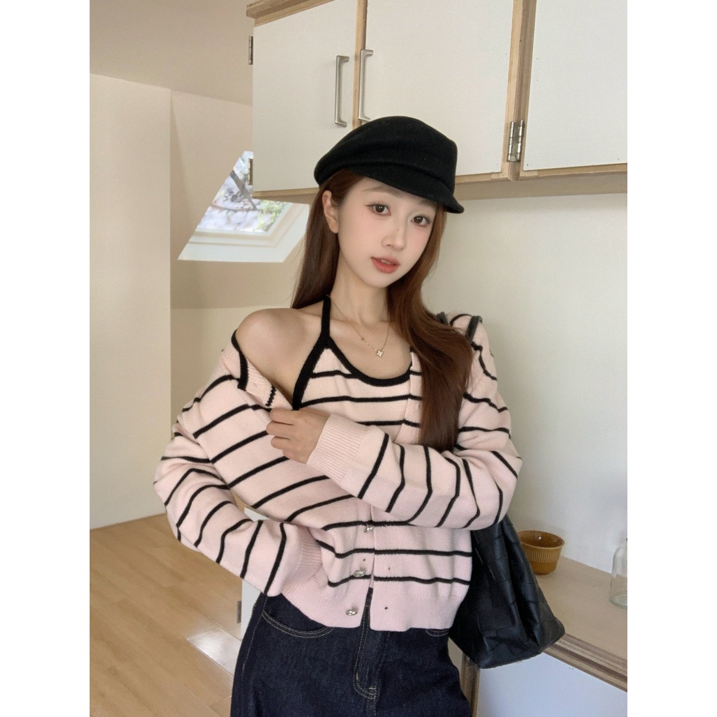 铅笔莓莓【恋恋日记】条纹针织开衫两件套女春季甜辣氛围感上衣