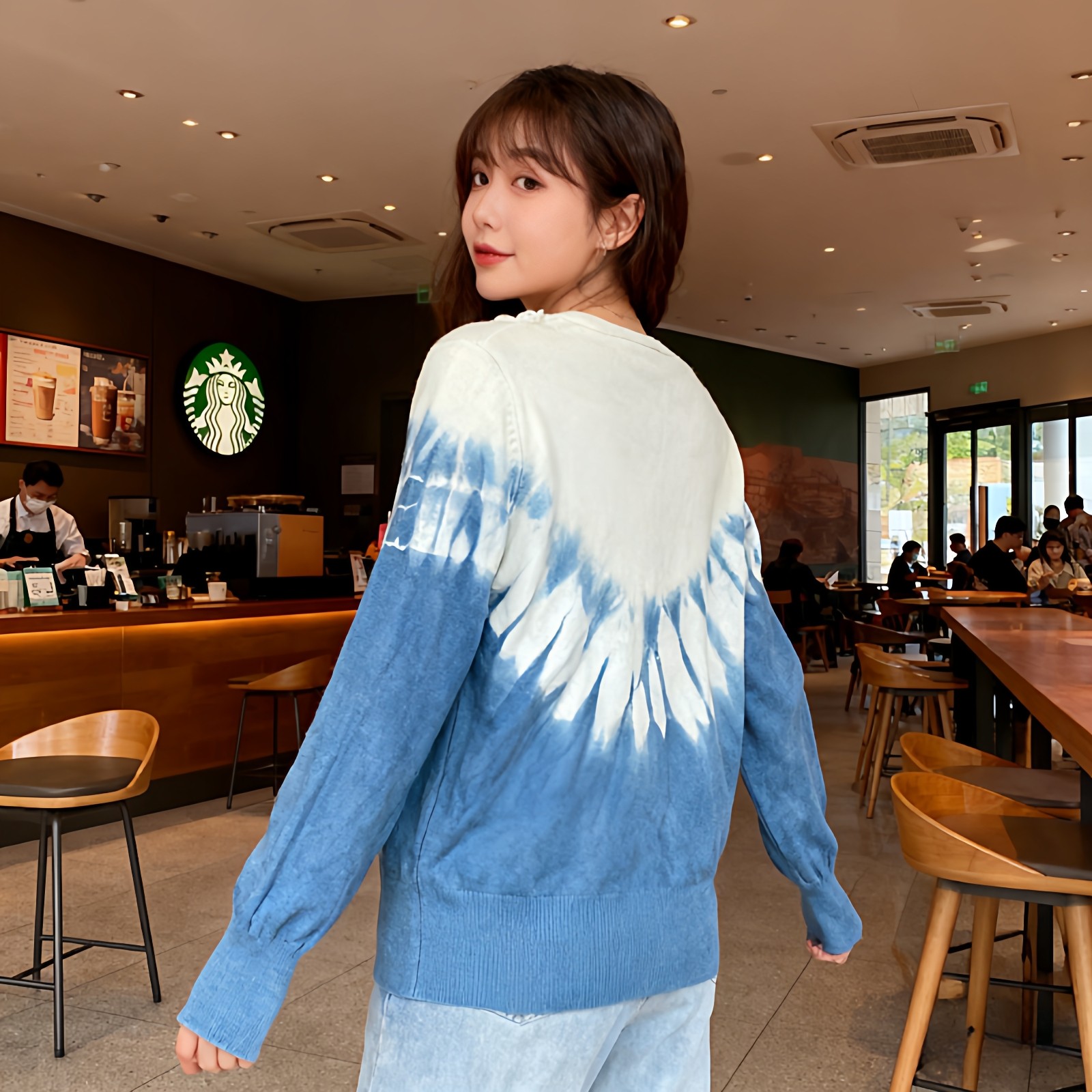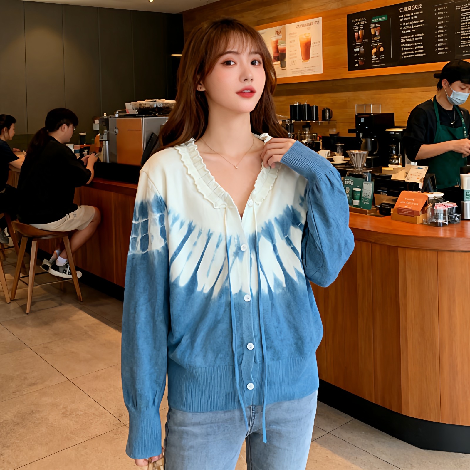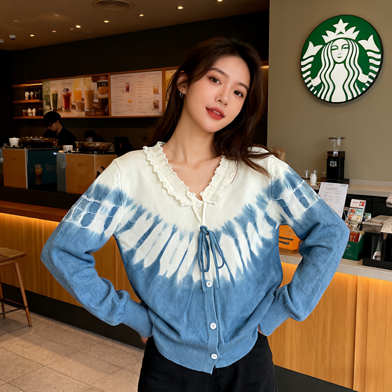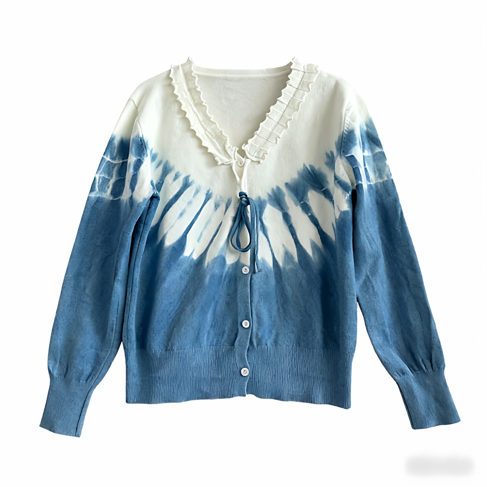 首页> 女装> 大理扎染针织短款开衫女2026春季时尚百搭针织衫v领上衣毛衣外套