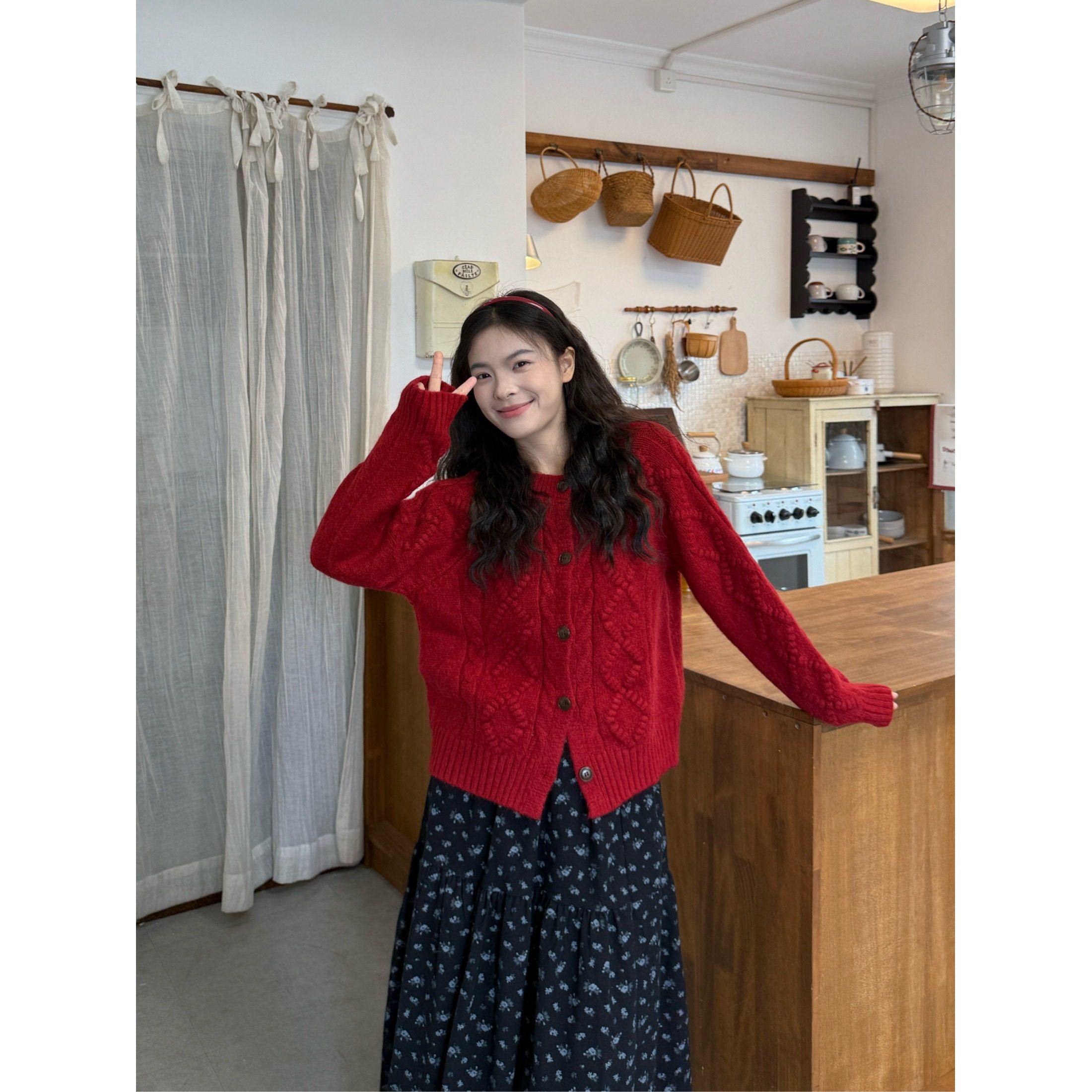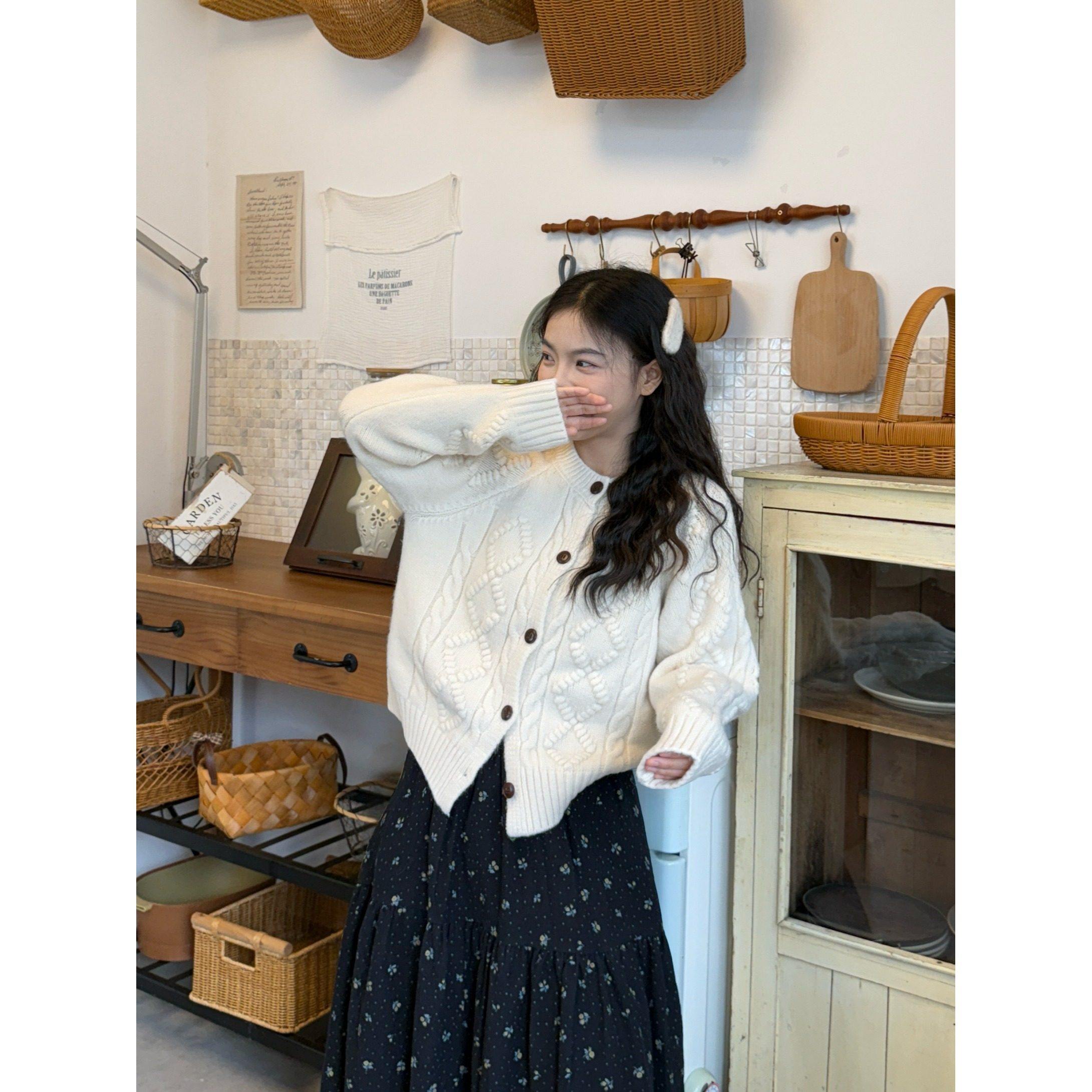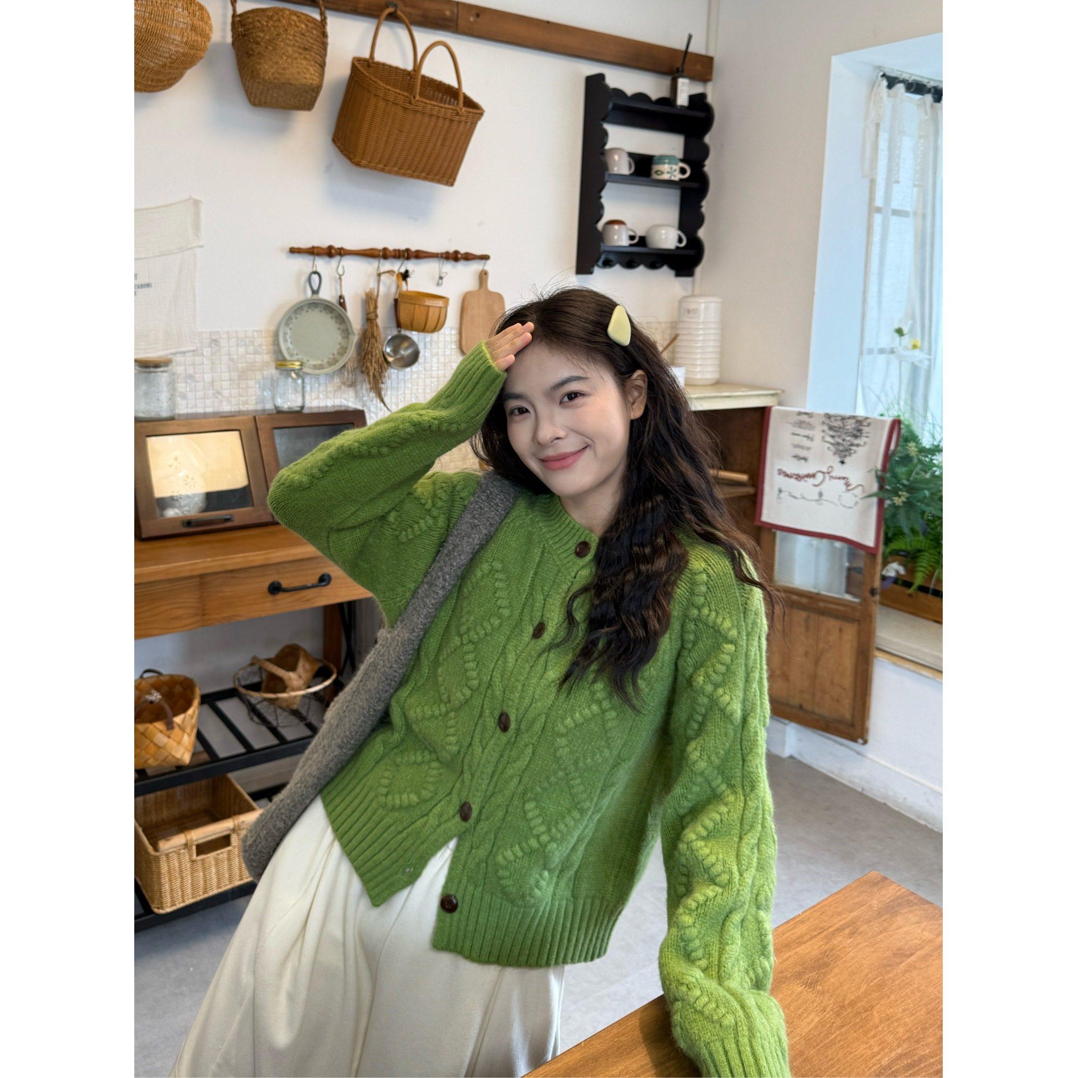 PPHOME温柔风加厚软糯麻花毛衣短外套女秋冬韩系宽松休闲针织开衫