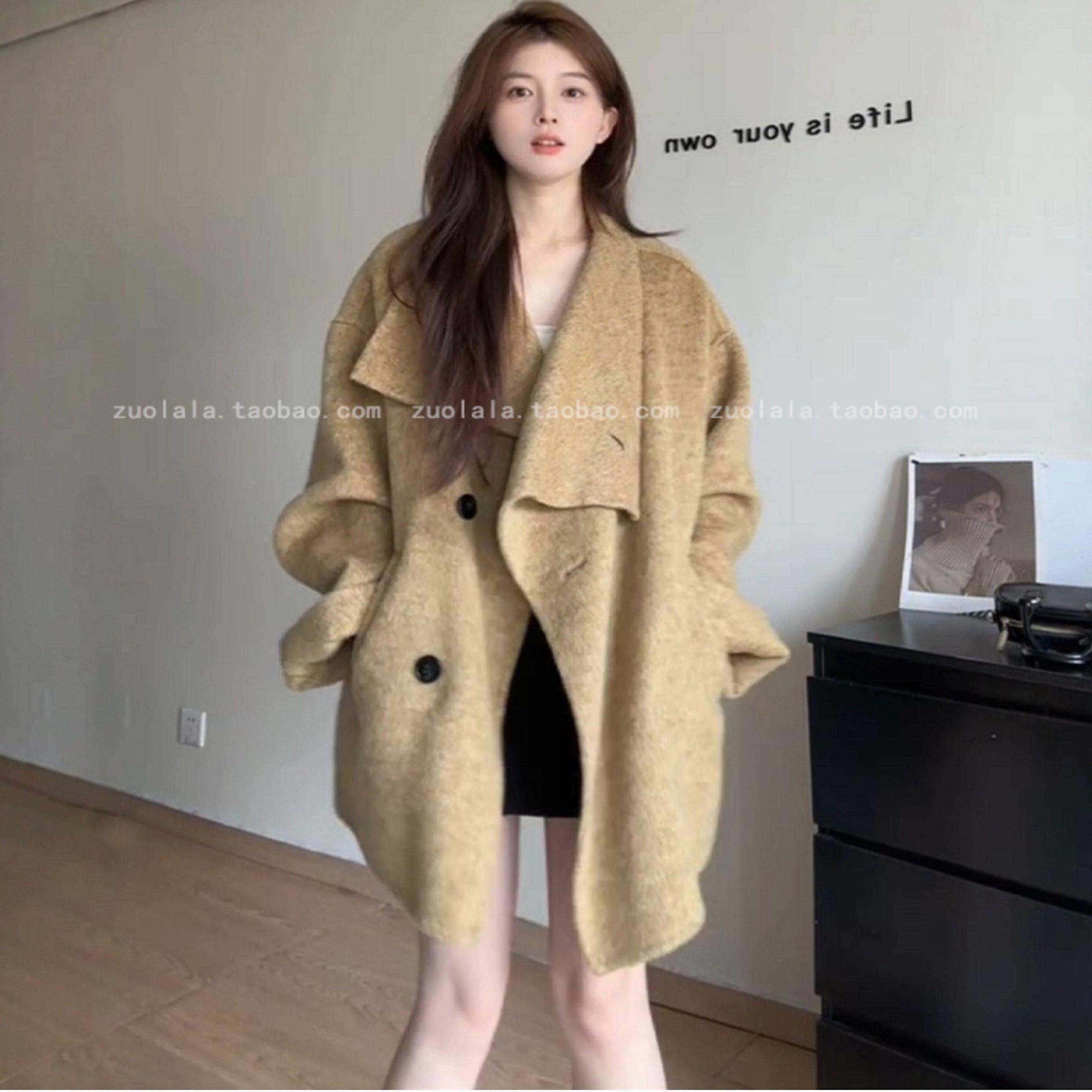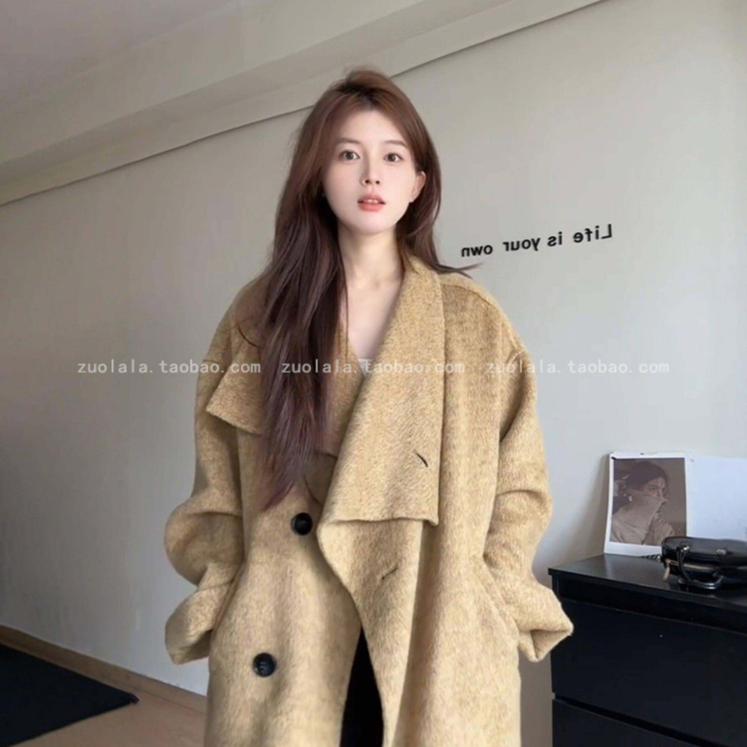 首页> 女装> 香港韩系高级感黄色翻领呢子大衣女秋季大码胖mm宽松百搭毛呢外套