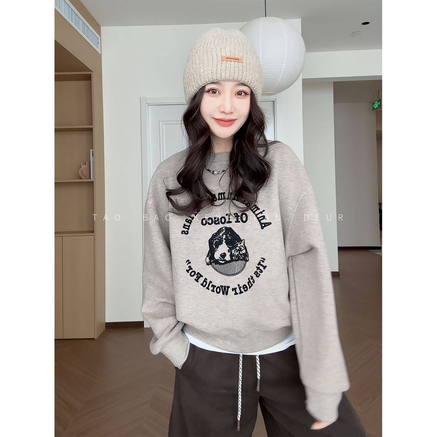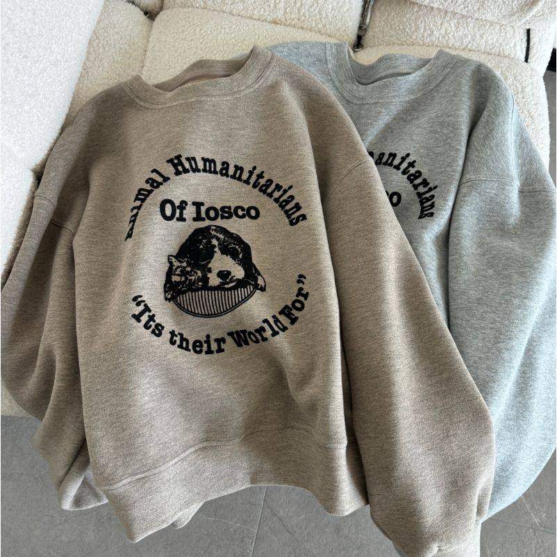 KEKE【奶泡星球】不加绒韩系显瘦圆领百搭植绒休闲宽松慵懒风卫衣