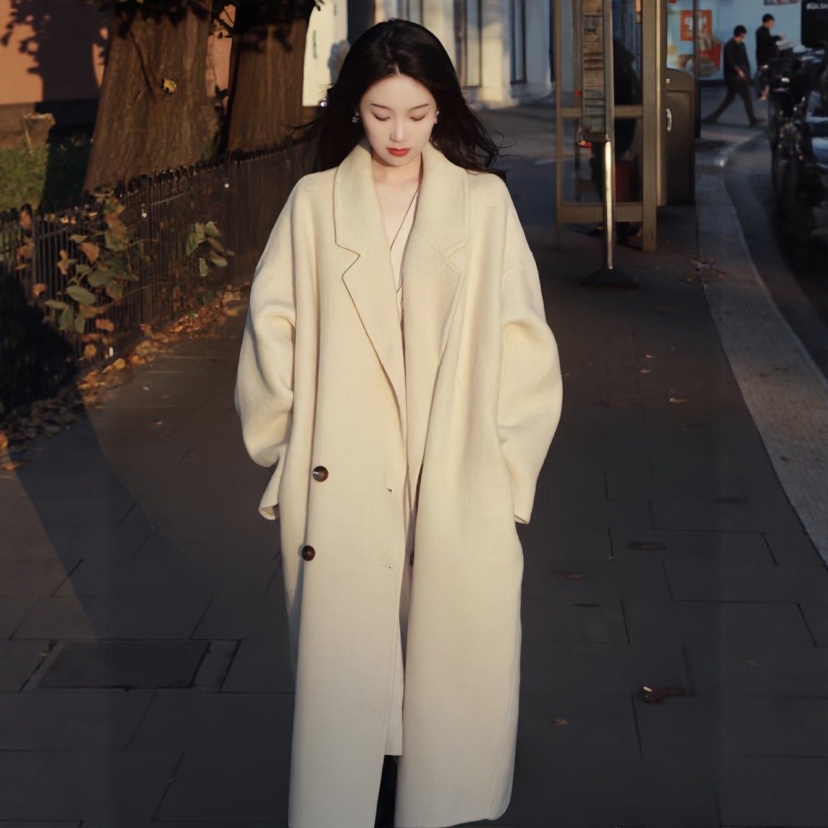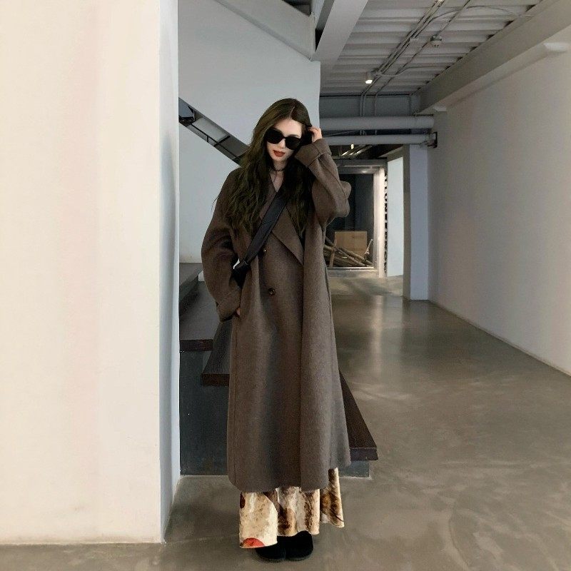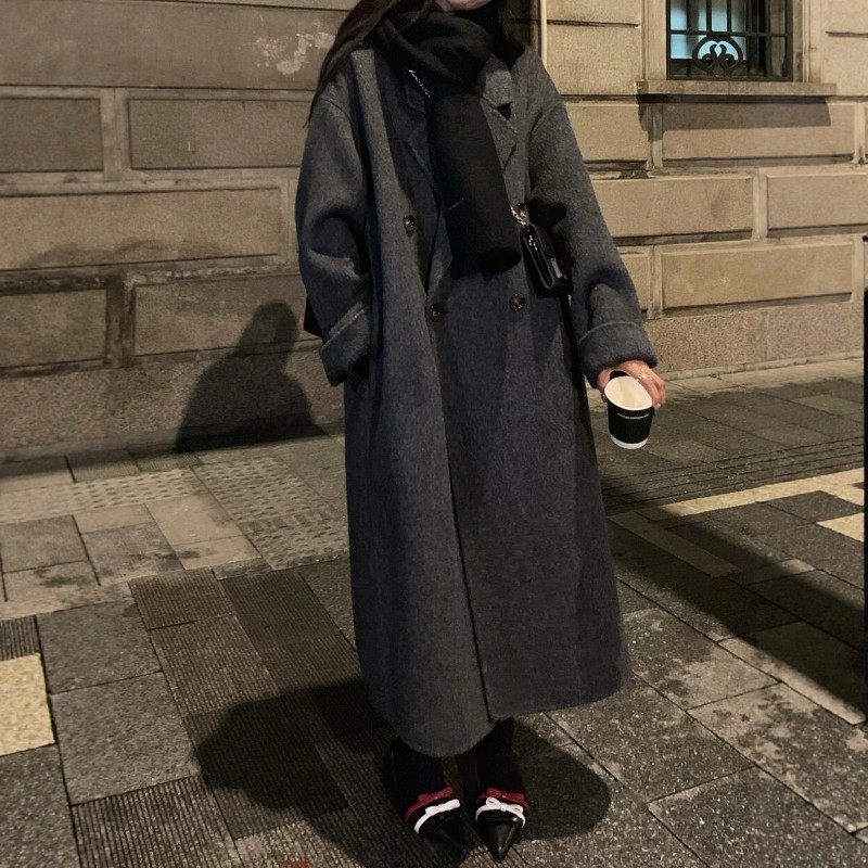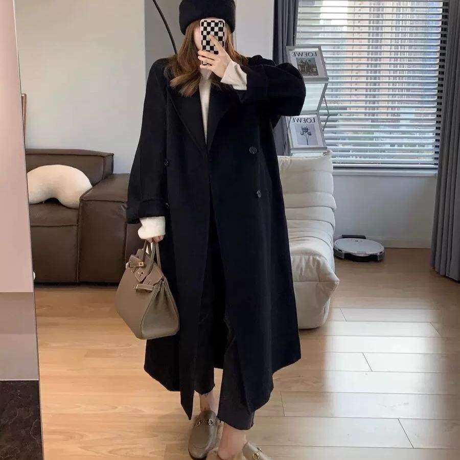 双面羊绒大衣女2025秋冬黑灰色新款韩系宽松中长款高端羊毛呢外套