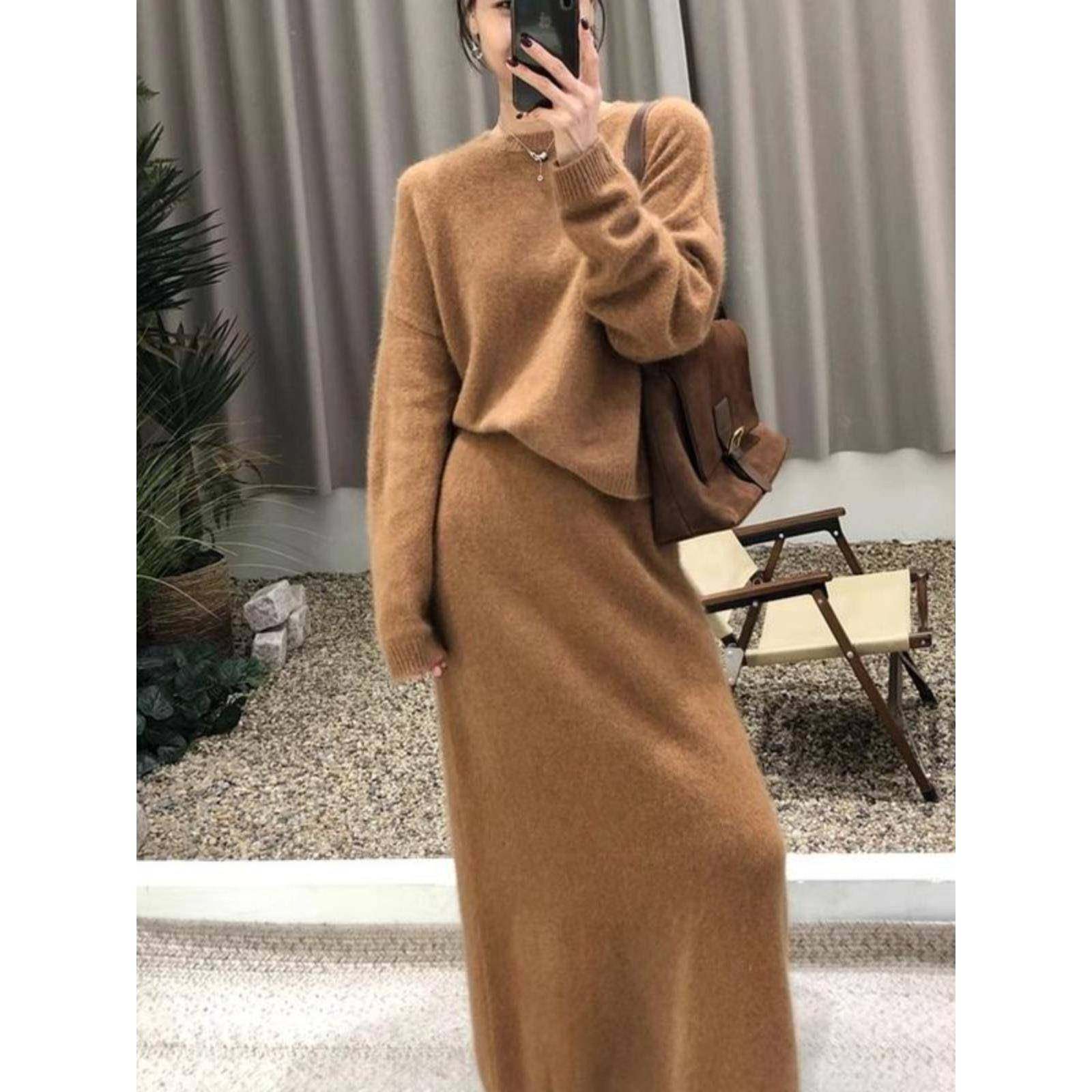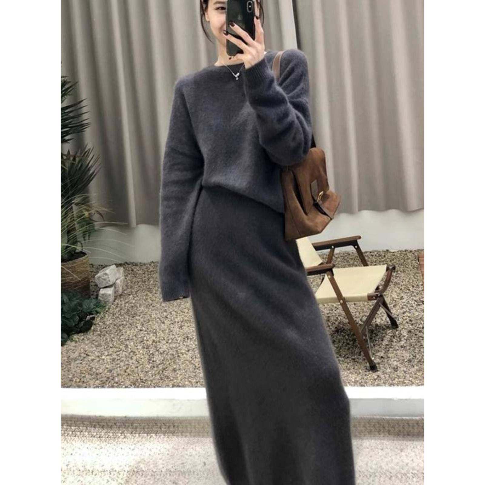 首页> 女装> 香港2025穿搭针织套装绝美奶fufu慵懒风灰色毛衣半身裙两件套秋冬