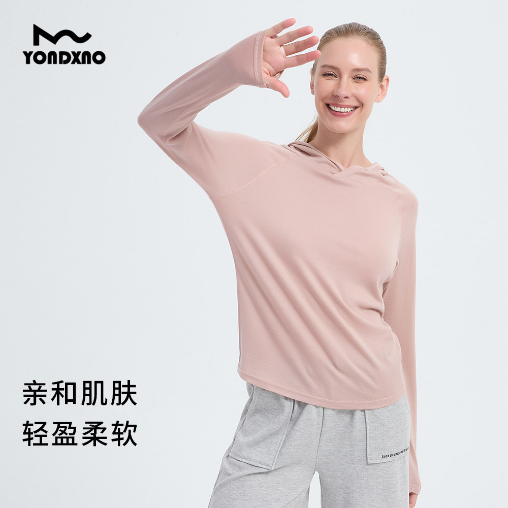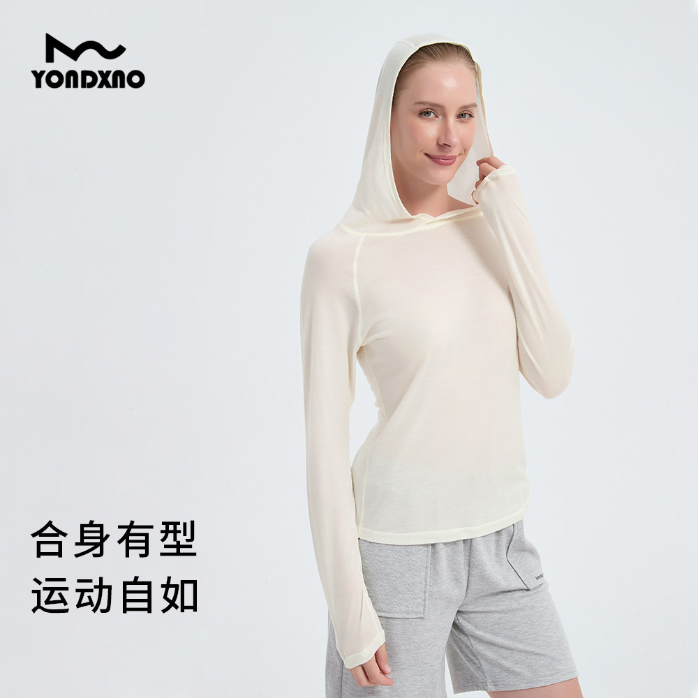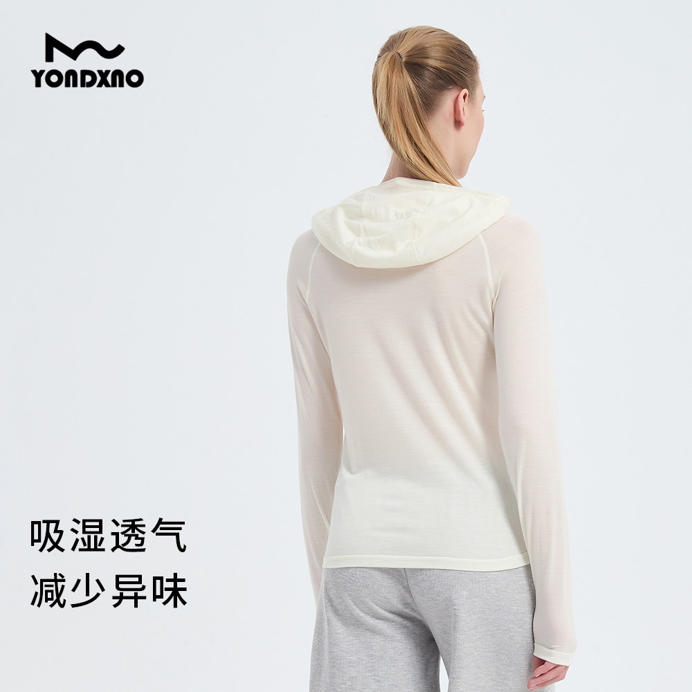 羊小诺美利奴羊毛速干衣女轻薄户外徒步连帽衫超薄羊毛长袖160