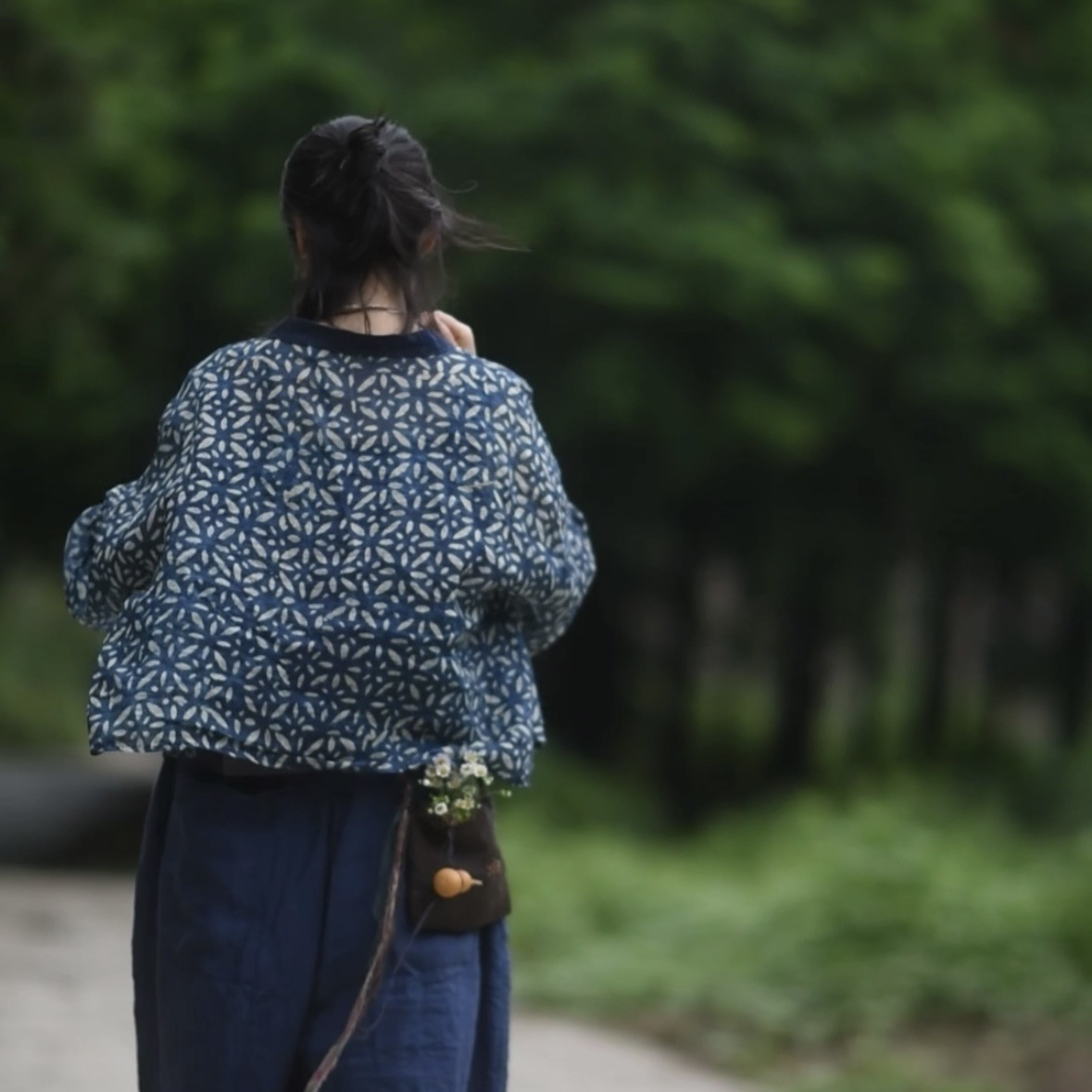 子曰原创设计文艺风苎麻印花系带开衫外搭复古宽松轻薄透气防晒衫