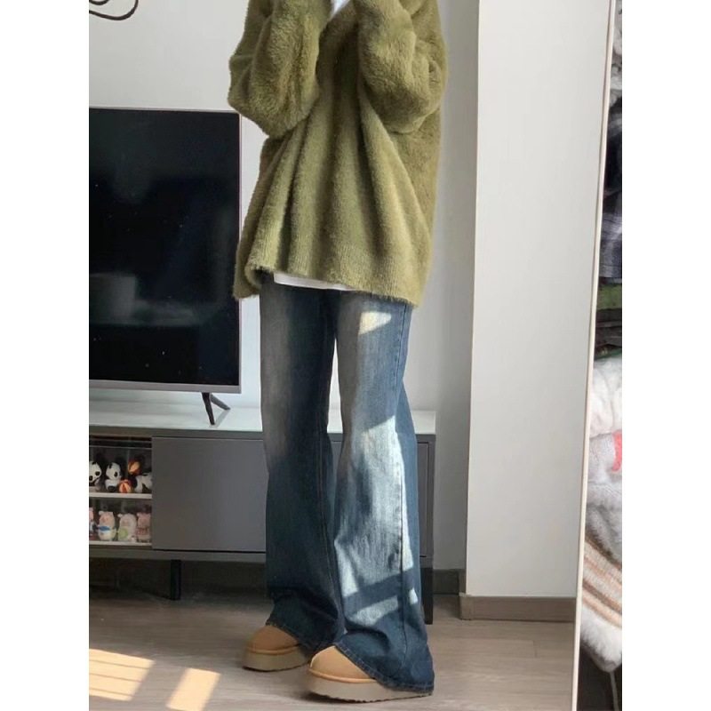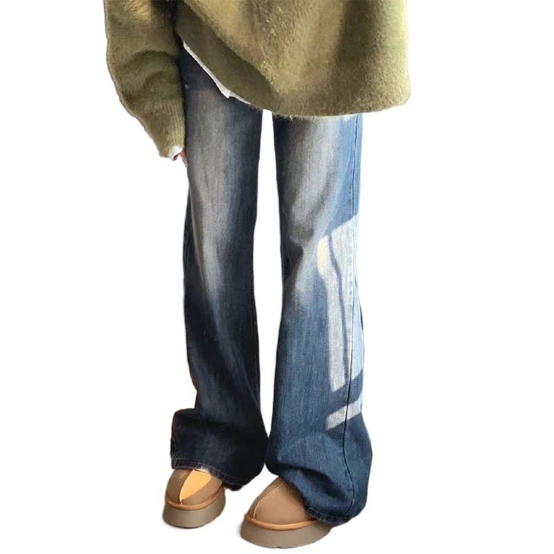 不贴腿微喇牛仔裤女秋季新款高腰阔腿显瘦百搭直筒拖地喇叭裤子潮