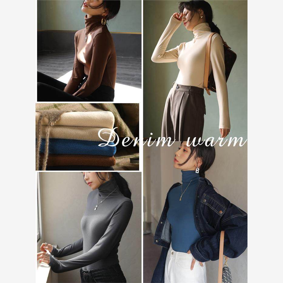 纯色德绒堆堆高领打底衫女内搭秋冬季加绒加厚长袖打底衣紧身t恤