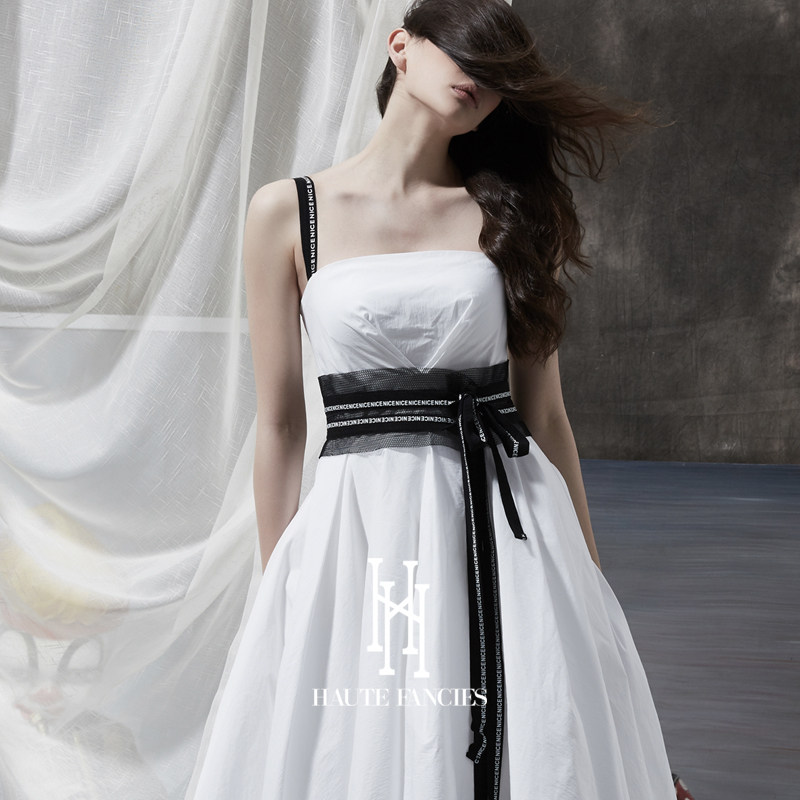 小白裙 HAUTE FANCIES后构想|纯白超大裙摆吊带腰封连衣裙25秋