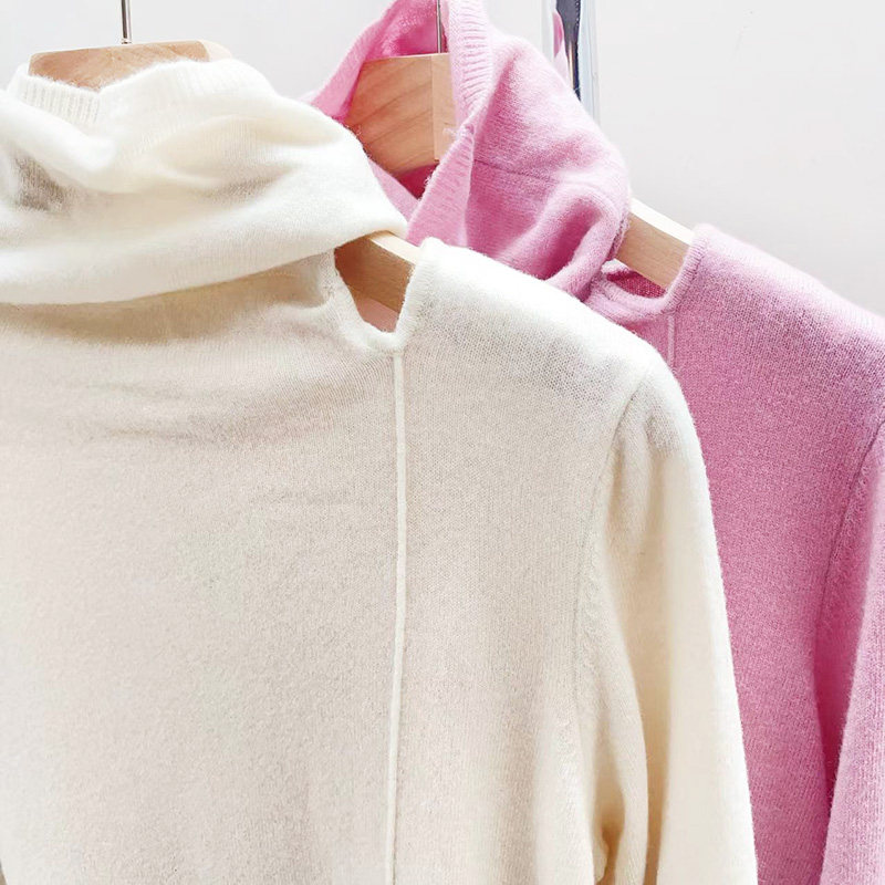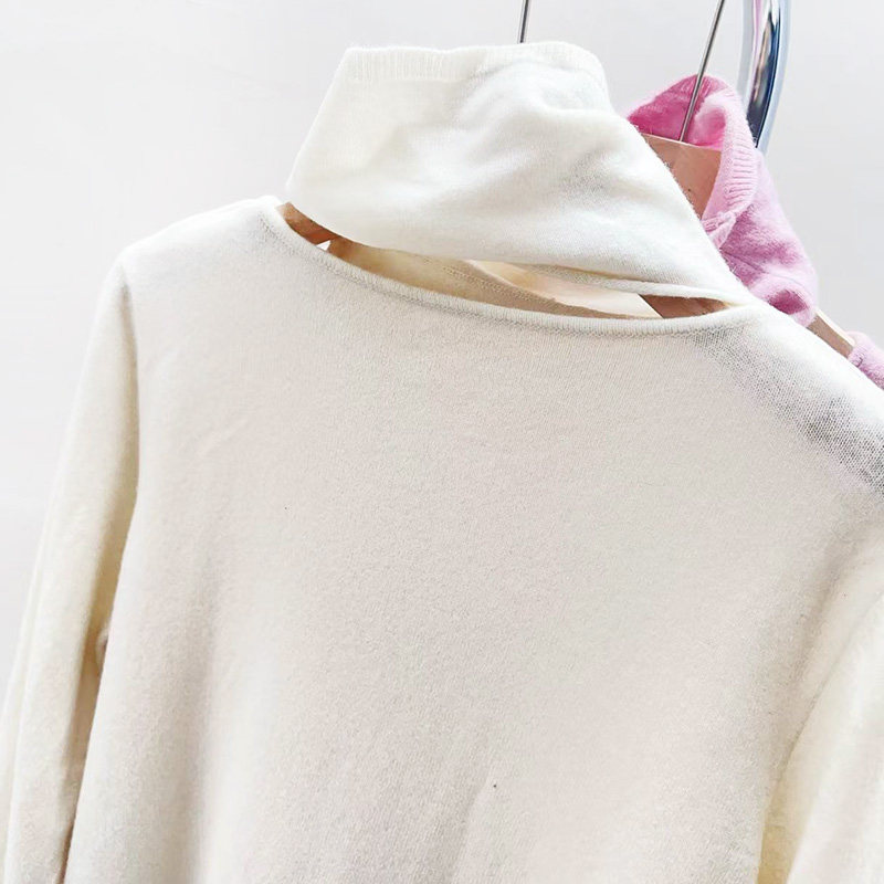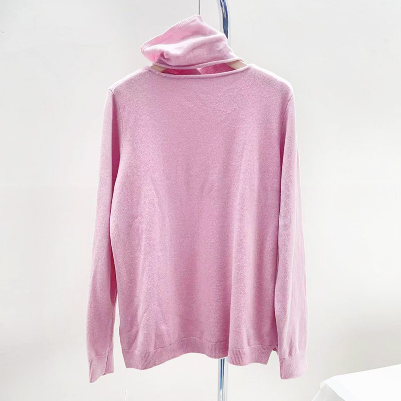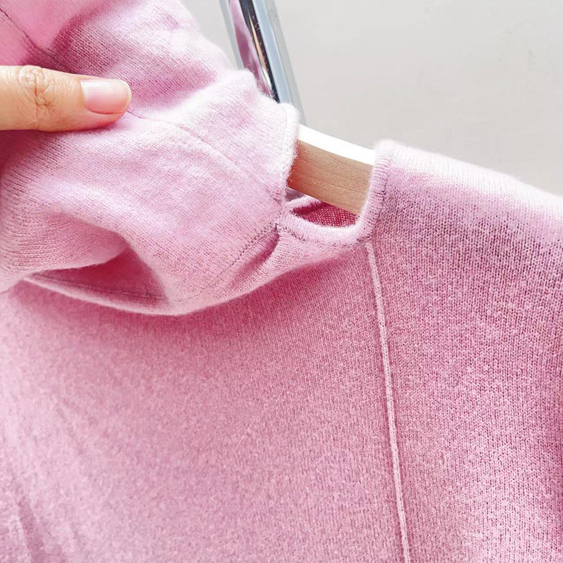 样衣 白色暗粉色高领毛衣围脖款羊毛衫休闲宽松针织衫0910
