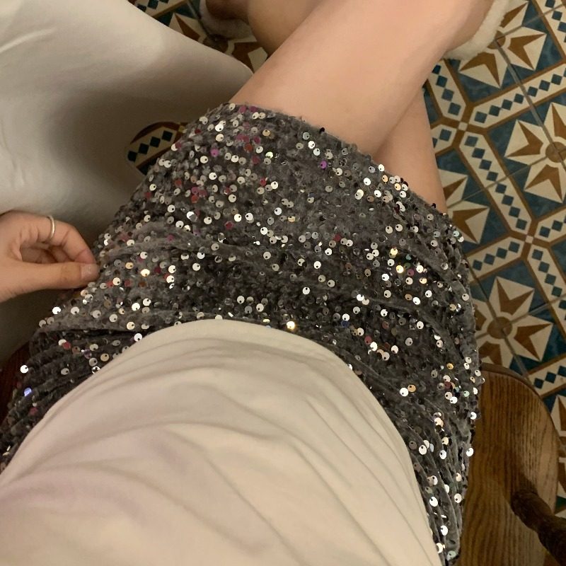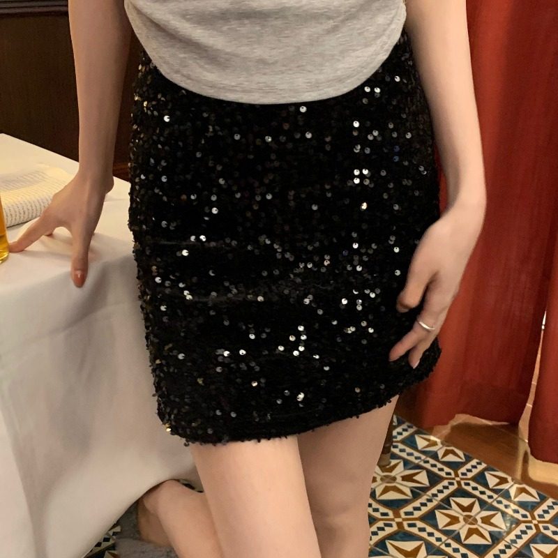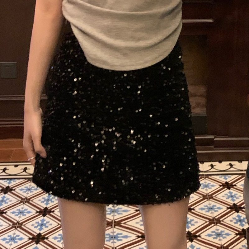性感辣妹超火亮片A字包臀短裙胖妹妹大码女装轻熟风修身半身裙子