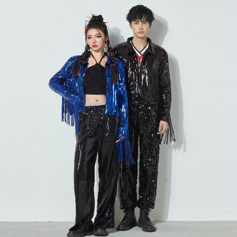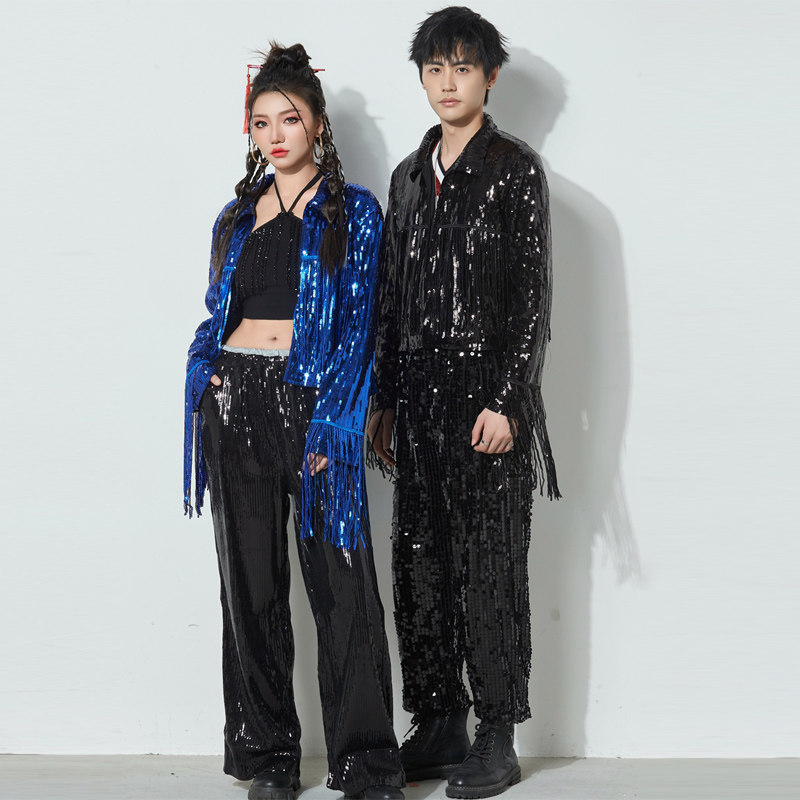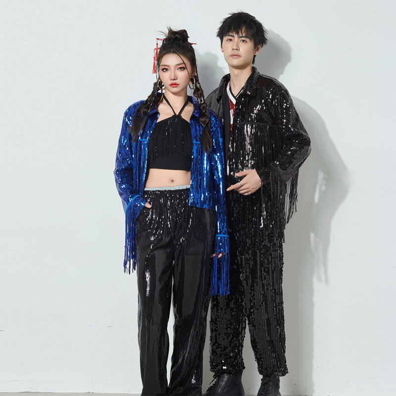 跳舞衣服装主播舞蹈舞台女歌手表演出服蹦迪闪闪亮片上衣流苏外套