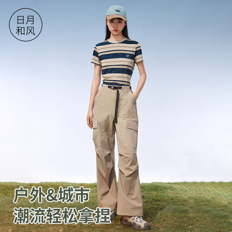 日月和风 速干机能城市轻运动户外弹力宽松伞兵工装休闲长裤女