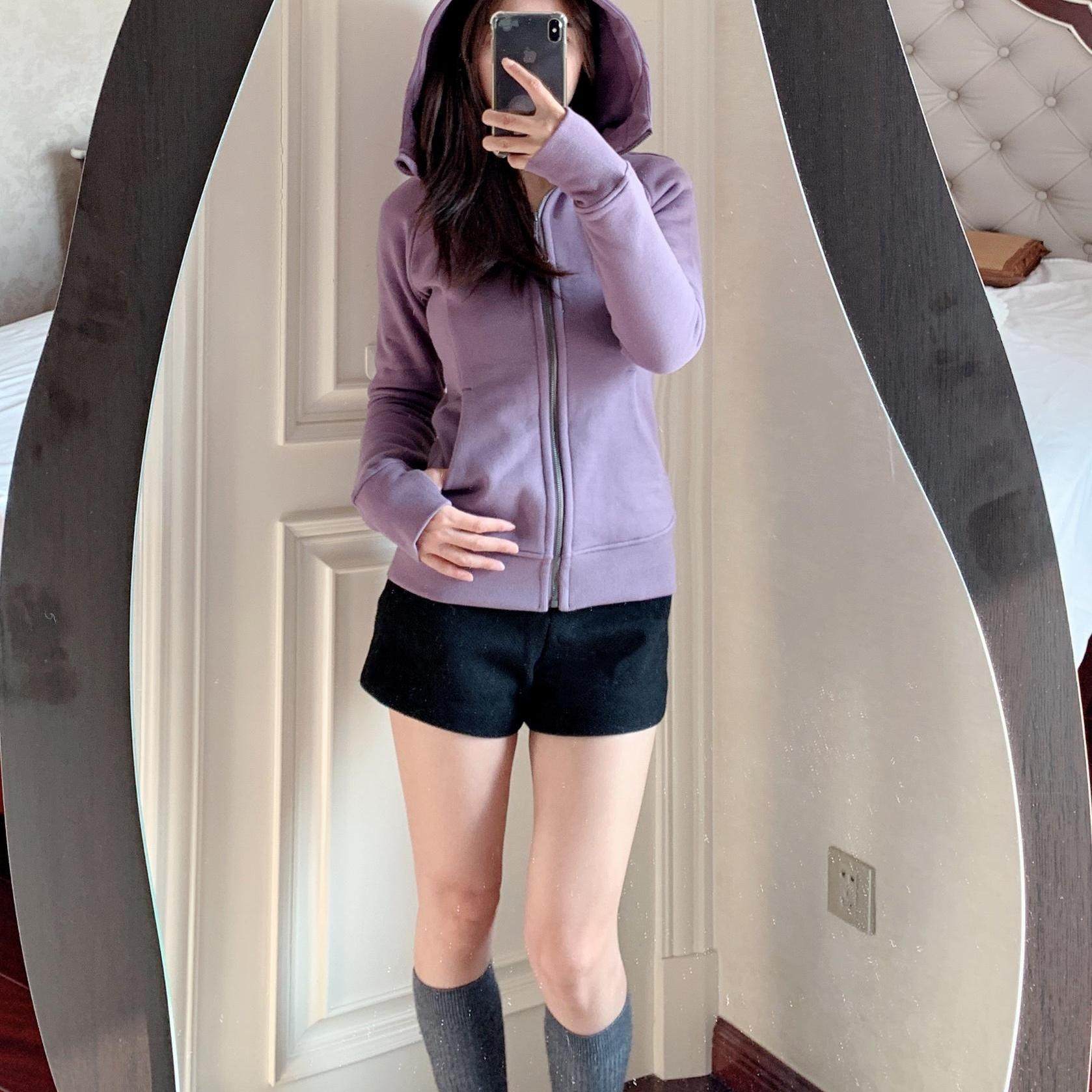 【陈小圆】韩国设计师修身版加绒卫衣雾霾紫蓝连帽拉链开衫外套