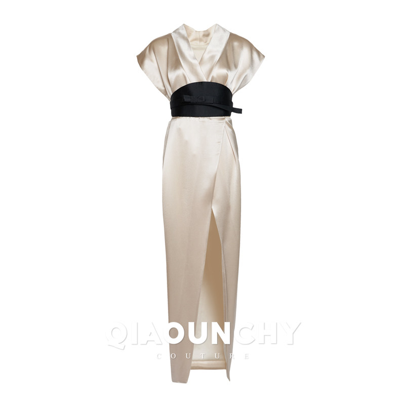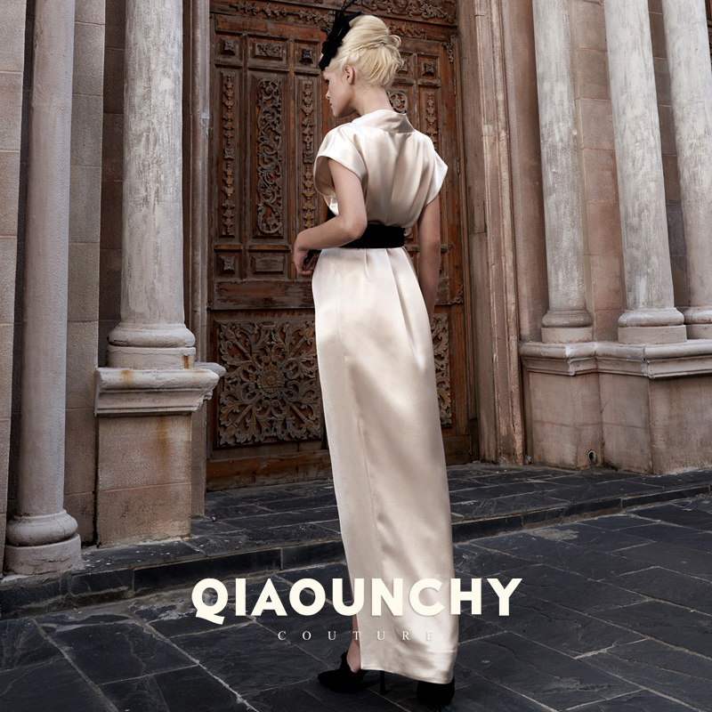 仙骨 QIAOUNCHY俏云曦|国风高定宽腰封高衩连衣裙25早秋长连衣裙