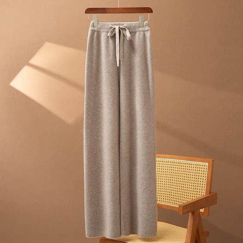 2025秋冬加厚轻奢高端纯羊毛阔腿裤女宽松休闲百搭针织多色直筒裤
