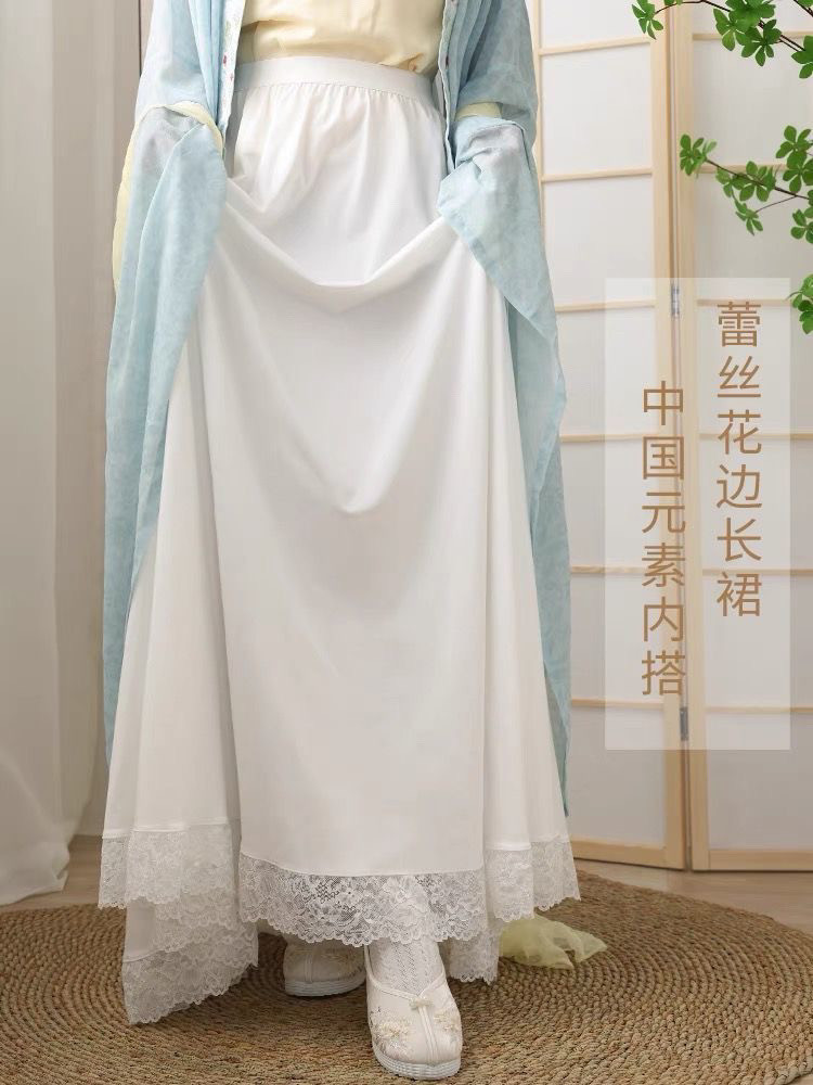 汉服内衬裙防走光马面裙内衬裙冰丝轻薄半身裙打底裙蕾丝摆白色