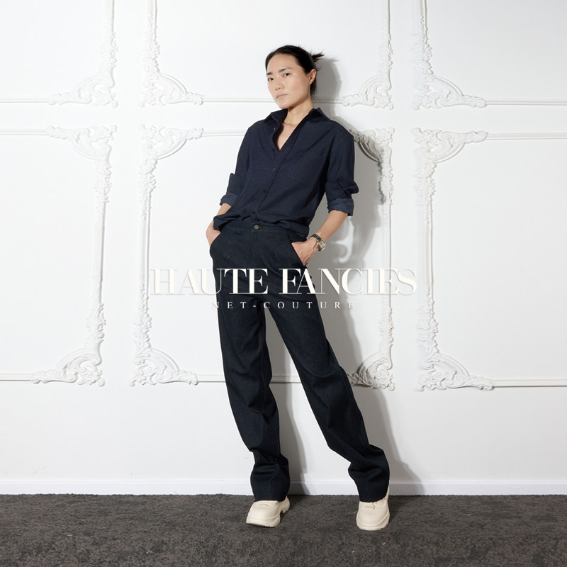 老公姐 HAUTE FANCIES后构想|25秋新品藏青色斜纹棉中高腰直筒裤