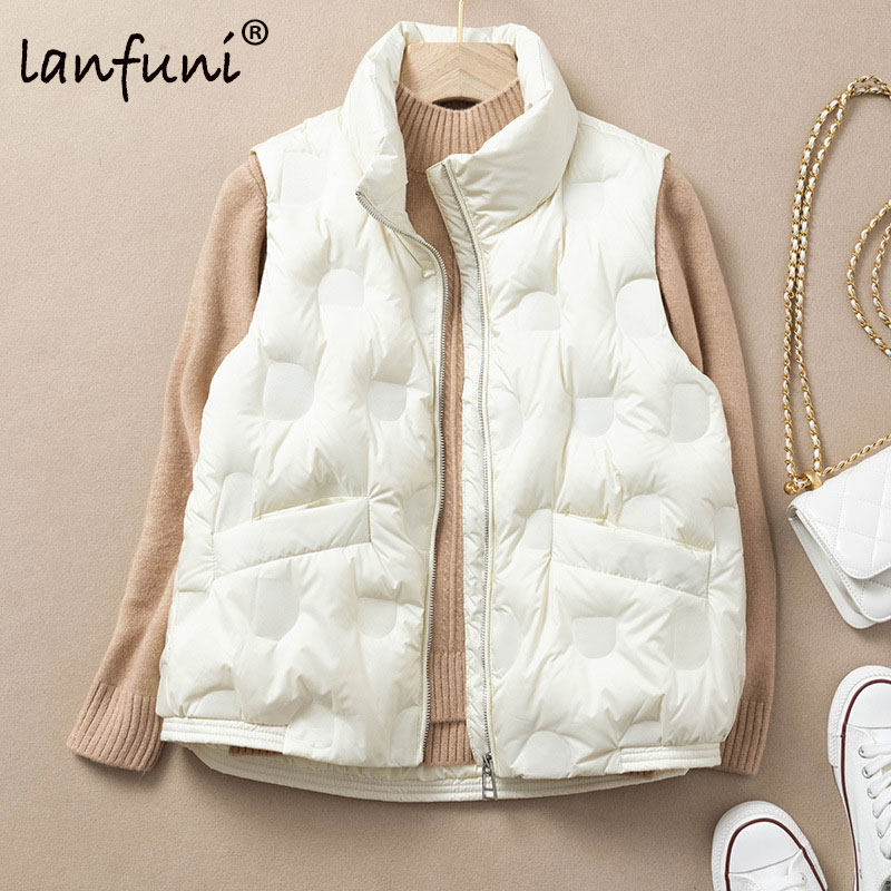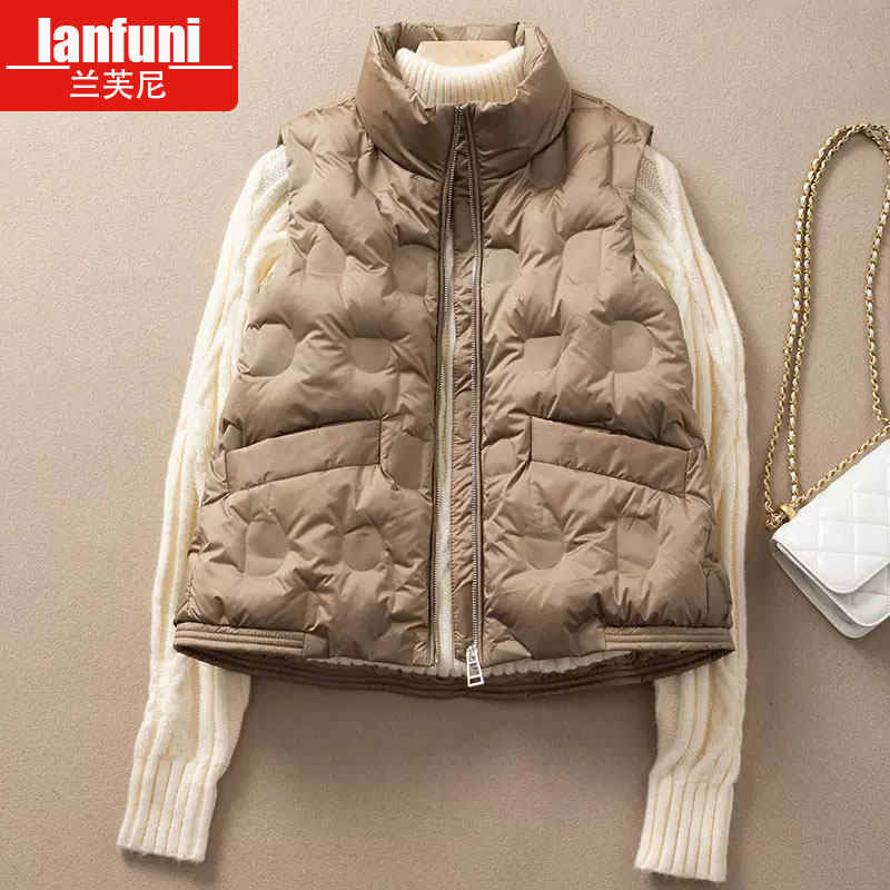 兰芙尼新款羽绒马甲女外穿马夹2025冬季短款立领纯色背心羽绒坎肩